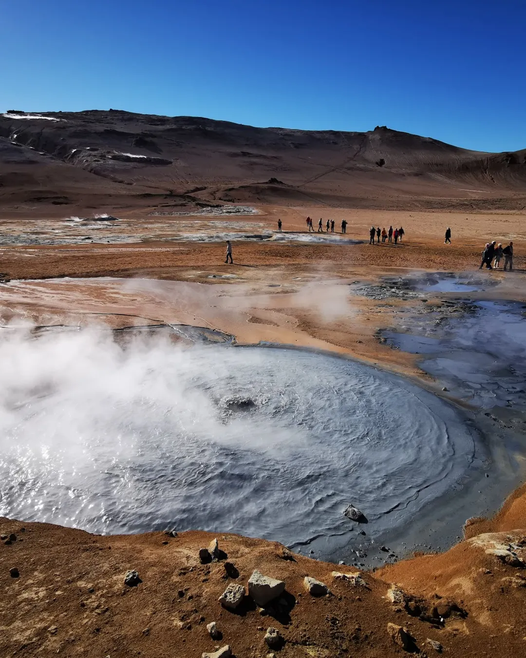 Picture a landscape reminiscent of another planet, with bubbling mud pots, hissing steam vents, and vibrant mineral deposits painted across the earth. This captivating spectacle at Námafjall mountain is a testament to the intense geothermal activity that lies beneath the surface.