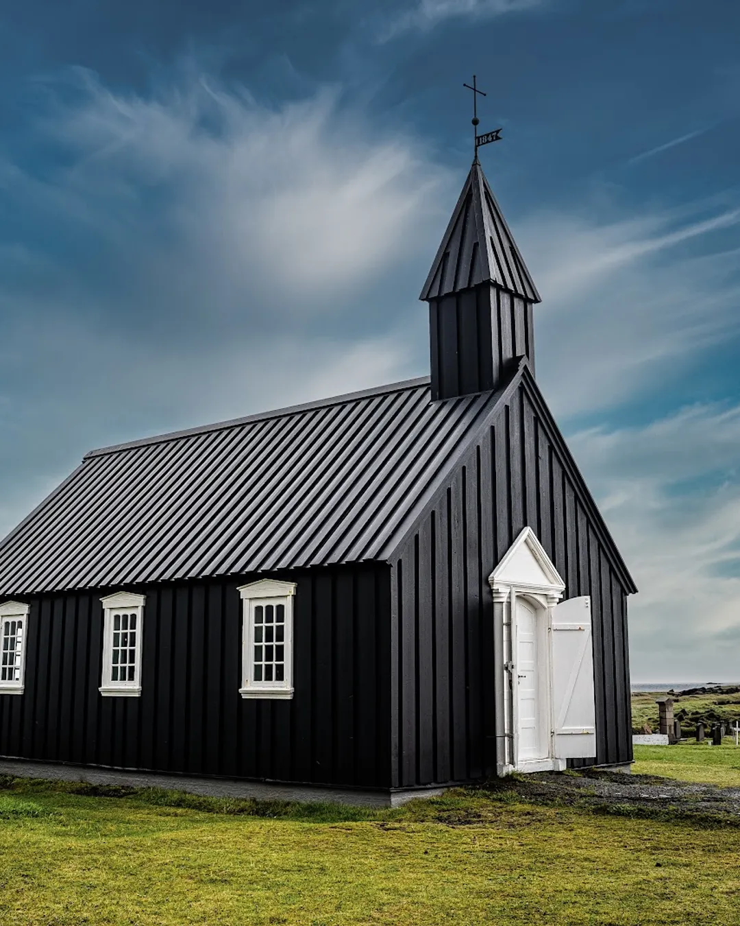 Búðakirkja church is a stunning, small, black wooden church that stands out in the rugged and dramatic landscape of Iceland. The church was built in the 19th century and is one of the few remaining black churches in Iceland. It is also one of the oldest churches in the country and has been an important place of worship for locals for centuries.