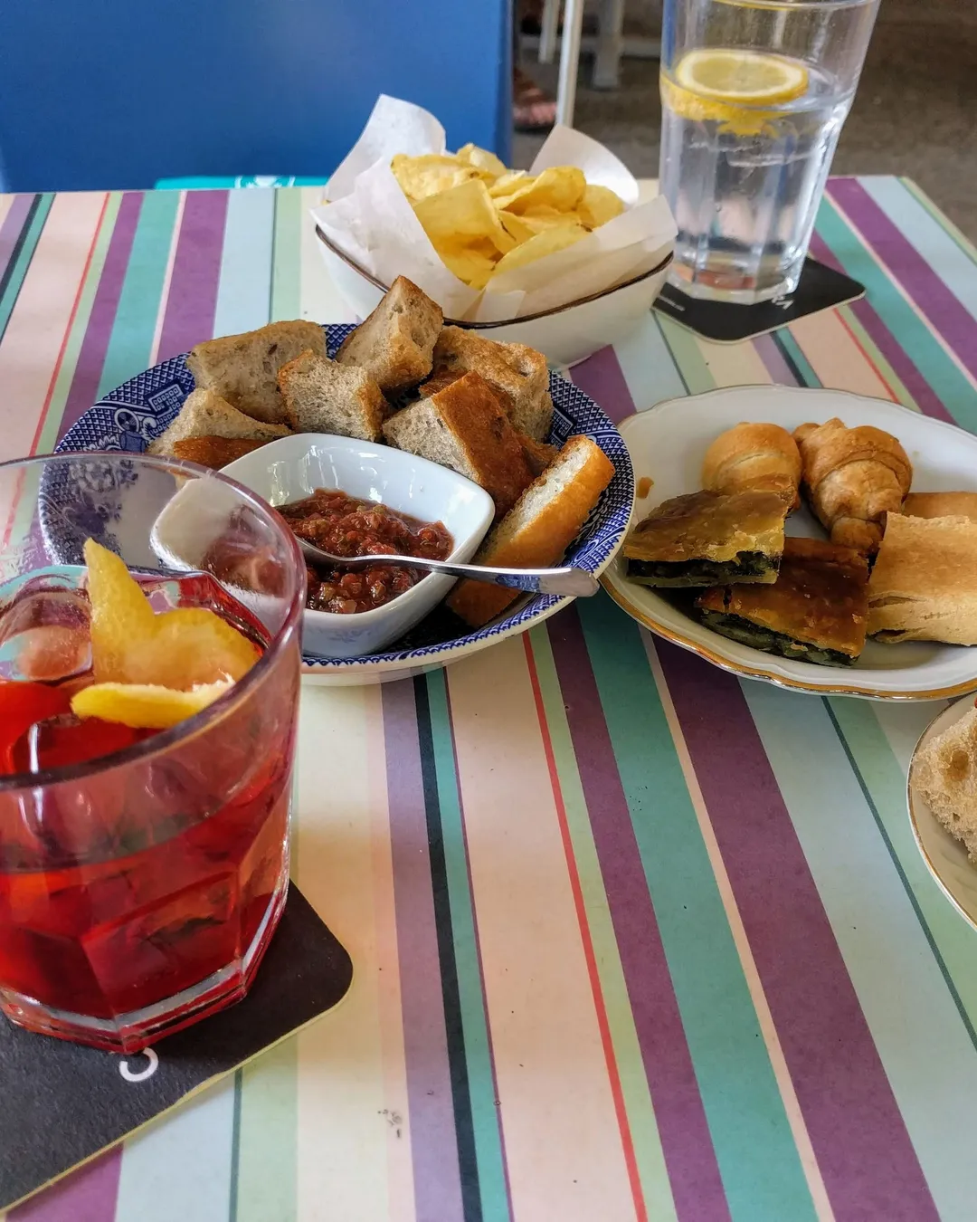 I've been going to the Bar Giardino for 20 years. Its a friendly place, you're a local if you've been there three times, and there is a variety of things to munch on in their pastry case, including tiny sandwiches and you can always get a local vegetable pie called Torta d' erbe.