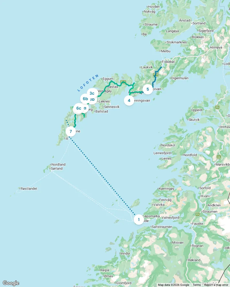 Experience the magic of Lofoten in summer, where the sun never sets, casting a golden glow over it's dramatic landscapes. Explore rugged mountains, pristine fjords, and charming fishing villages, all while enjoying endless outdoor adventures like hiking, kayaking, and wildlife watching.