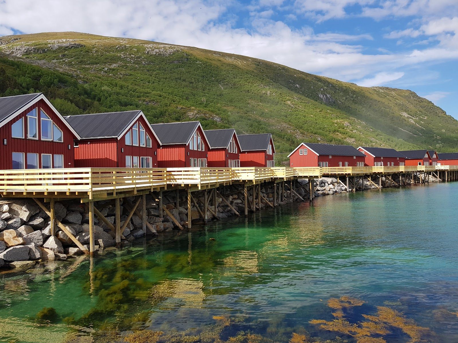 "Cozy waterfront cabins in Lofoten."