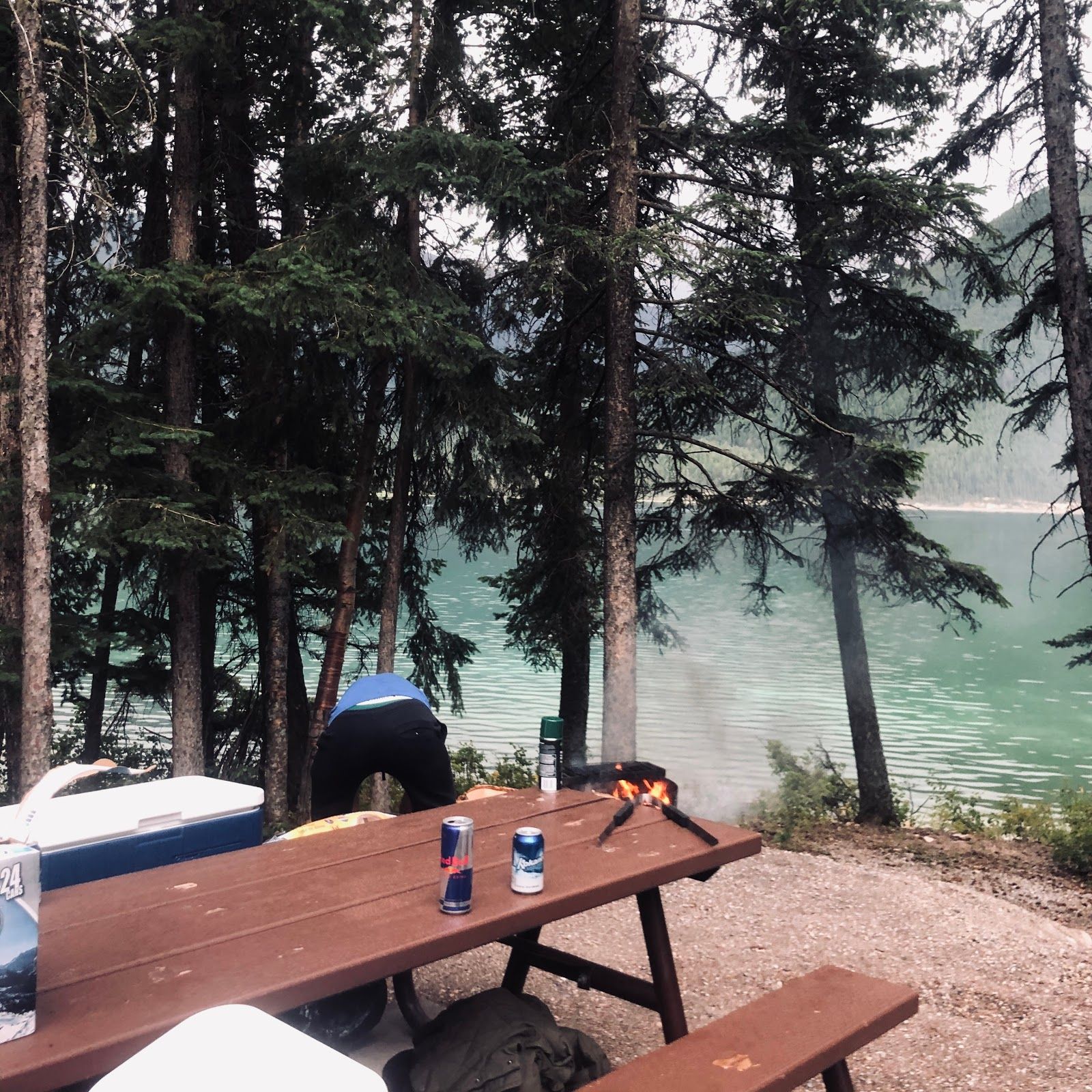 "Scenic lake camping with hot springs"