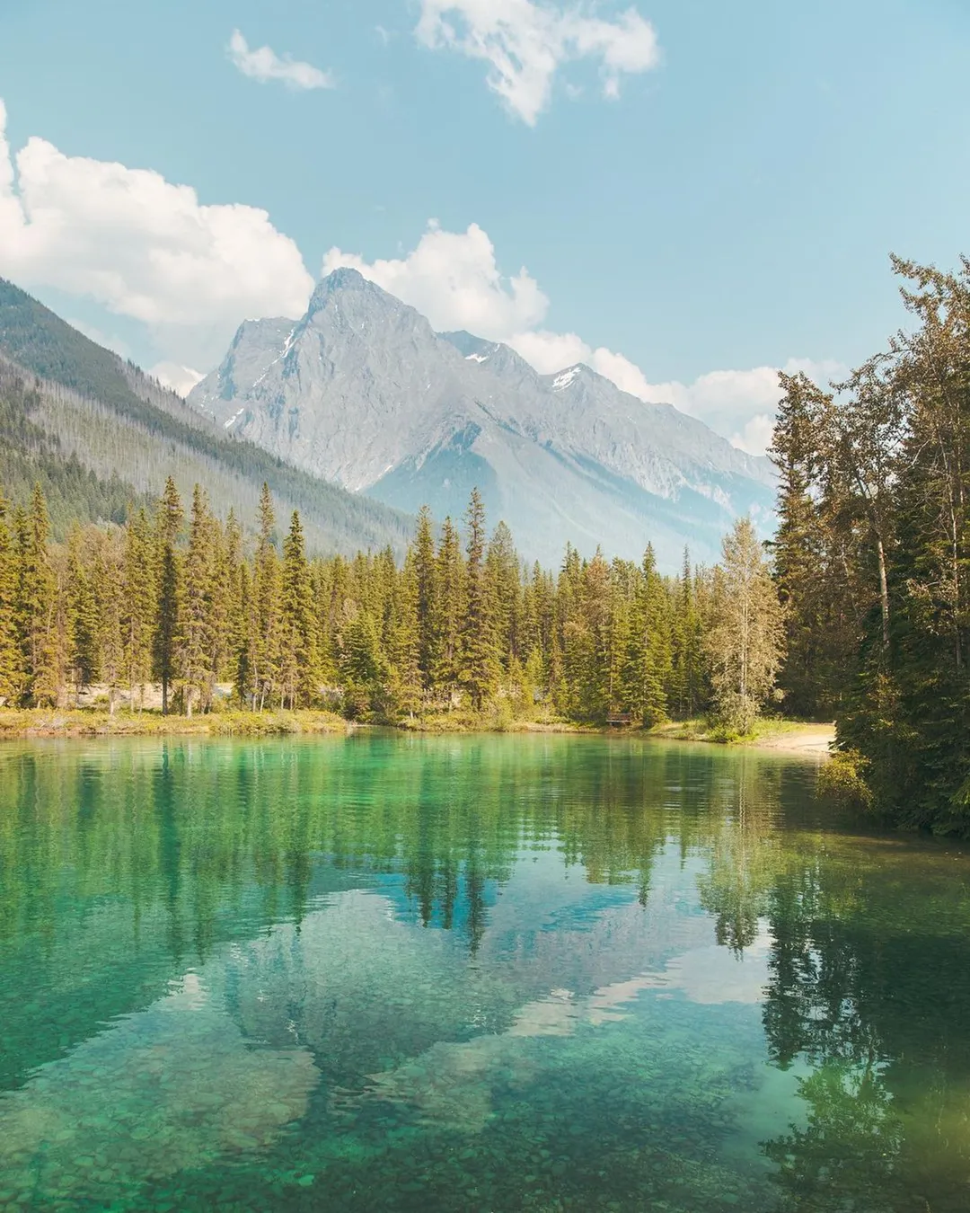 Faeder Lake in Yoho National Park, British Columbia, Canada is an idyllic escape from reality. At first glance, the lake appears small and shallow, but it offers many hidden treasures. Visitors can enjoy a peaceful picnic on the shores or explore vast nature trails along the Kicking Horse River - all within a few minutes of the highway. While enjoying the scenic views, visitors should beware of the large animal tracks on the lakeshore. All in all, Faeder Lake is a must-see if you're ever exploring Yoho National Park!