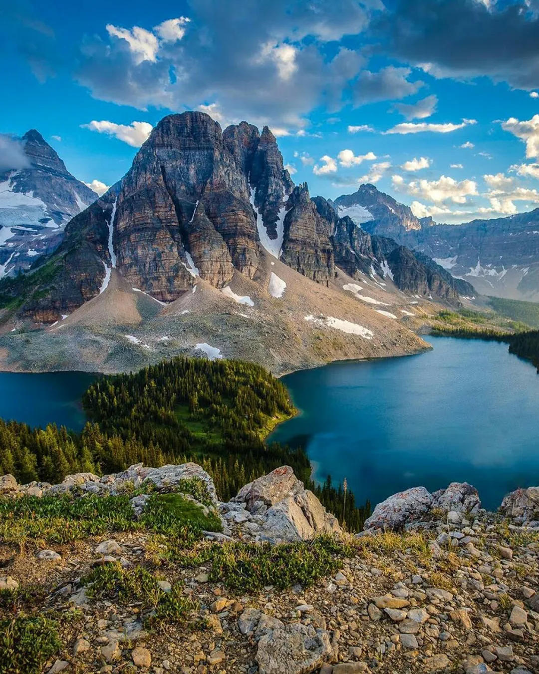 Mount Assiniboine Provincial Park is an amazing, unspoiled wilderness area full of breathtaking lakes, glaciers, landscapes and a sky-scraping peak that has been awe-inspiring visitors for centuries. Without roads, trails are the only way to access the park—which is ideal for camping, fishing, horseback riding, hiking, and skiing/ski touring. The park’s Magog Lake and Og Lake campgrounds are popular destinations for camping and have added amenities such as cooking areas, water taps, and tent pads. Naiset Cabins, O’Brien Meadows Group Campground, and other first come, first served cabins are available throughout the park as well. Despite its popularity, Mount Assiniboine remains a stunningly pristine landscape, giving visitors an unbeatable sense of adventure a peace of mind.