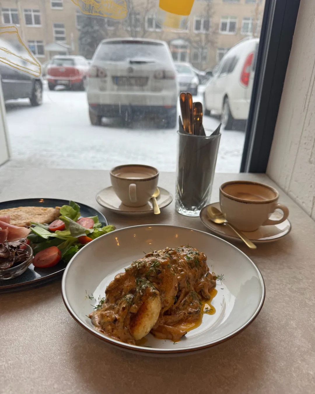 It's a brunch place outside the city center.