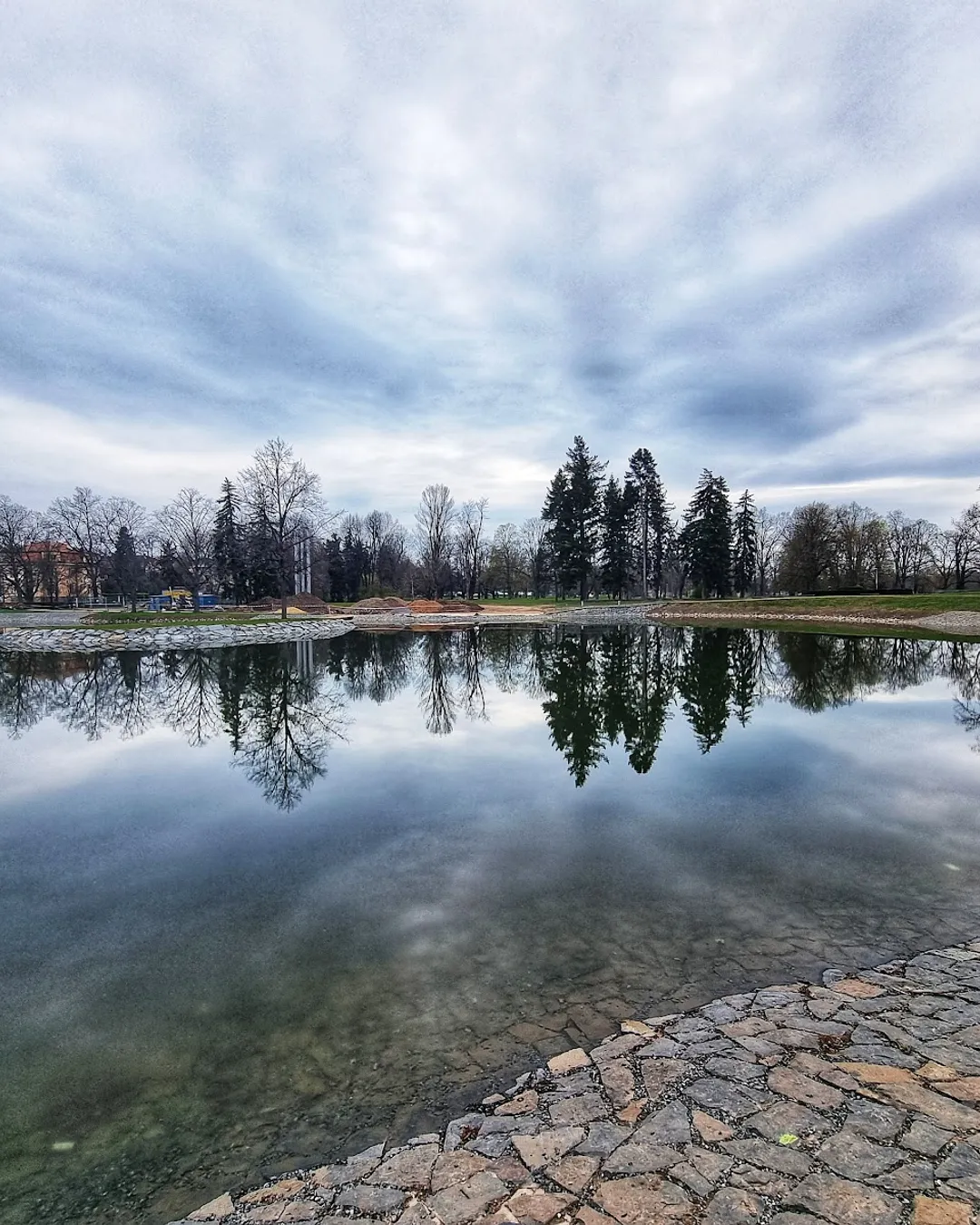 Tranquil pond in Prague park