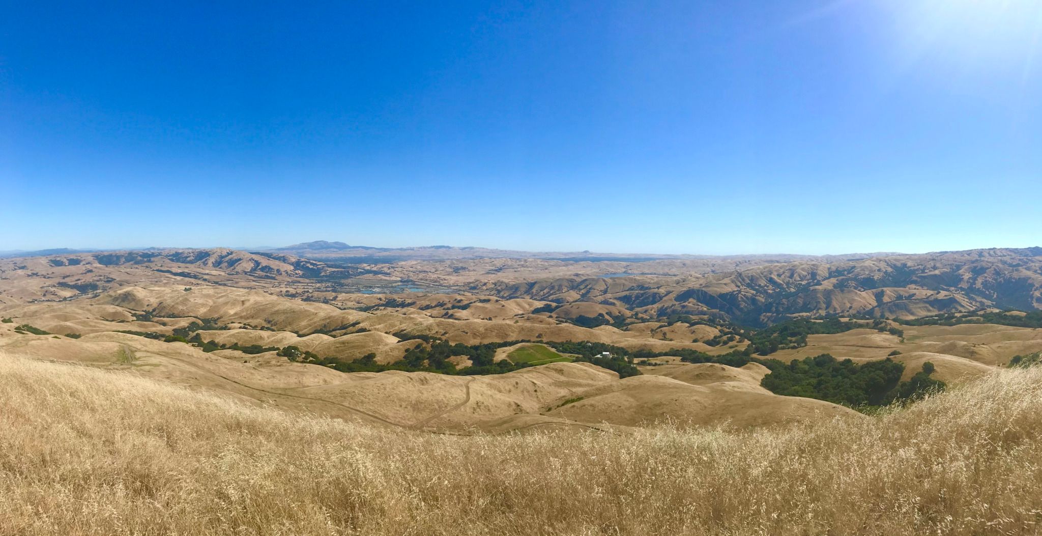Mission Peak Regional Preserve is a well-loved Park located in in Fremont, California. It features the well known Mission and Monument Peaks, which form a dramatic backdrop to the South Bay. The Peak Trail from Ohlone College is an enjoyable but challenging hike to the summit that passes through shaded woodlands and open grasslands. Hiking here is a popular activity and when visitors reach the top, they are rewarded with stunning views of Mount Hamilton to the south, the Santa Cruz Mountains to the west, Mt. Tamalpais to the north, and Mt. Diablo and the Sierra Nevada to the northeast. Furthermore, the Stanford Avenue staging area is also western access to the Ohlone Wilderness Trail, a 29-mile hiking and riding trail through some of southern Alameda County's most beautiful wilderness. It's a great spot for those looking for outdoor adventure!