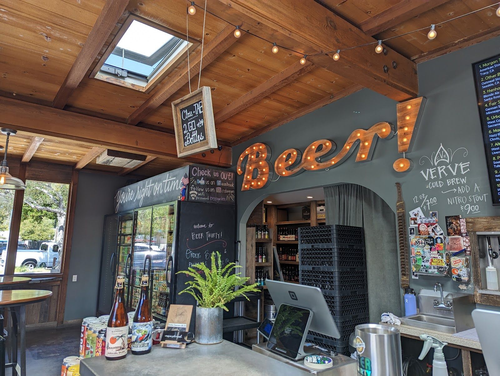 Beer Thirty Bottle Shop & Pour House in Soquel is the kind of spot you go when you want good beer without any of the fuss. It’s casual, dog-friendly, and built for hanging out — big picnic tables, a shady beer garden, ping-pong and cornhole, and a crowd that’s there to relax, not posture. They’ve got around 30 rotating taps plus a huge wall of cans and bottles, so you can always find something new to try. No food on-site, but you can bring in takeout, which honestly just adds to the easygoing vibe. Whether you’re wrapping up a beach day or meeting friends for an unplanned afternoon, it’s one of those places that’s reliably fun, familiar, and never tries too hard.