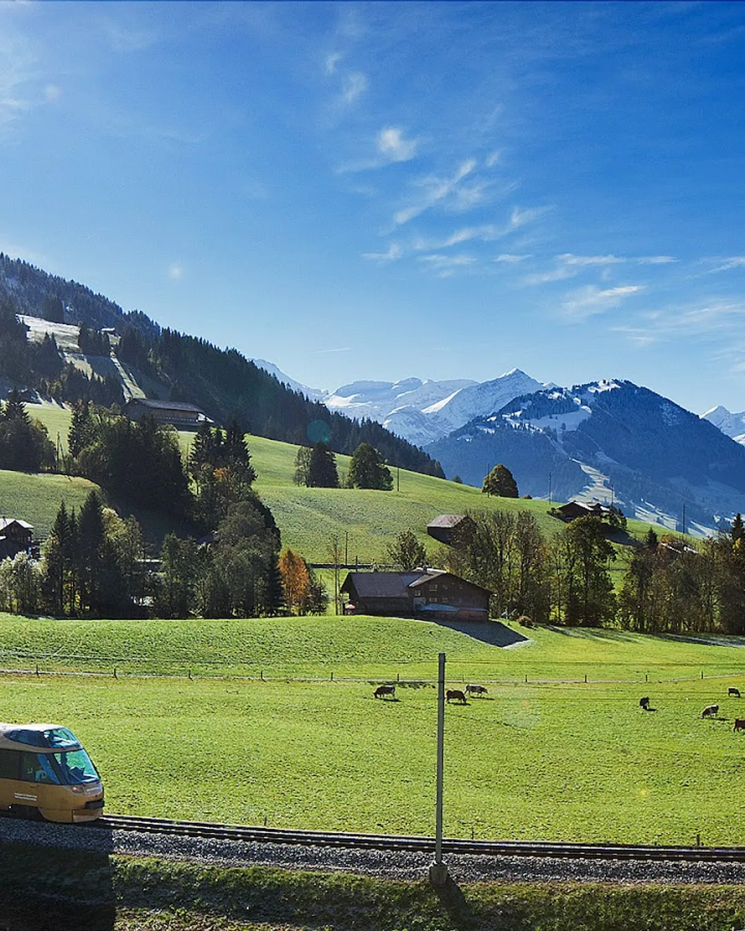 Scenic Alpine train journey in Switzerland