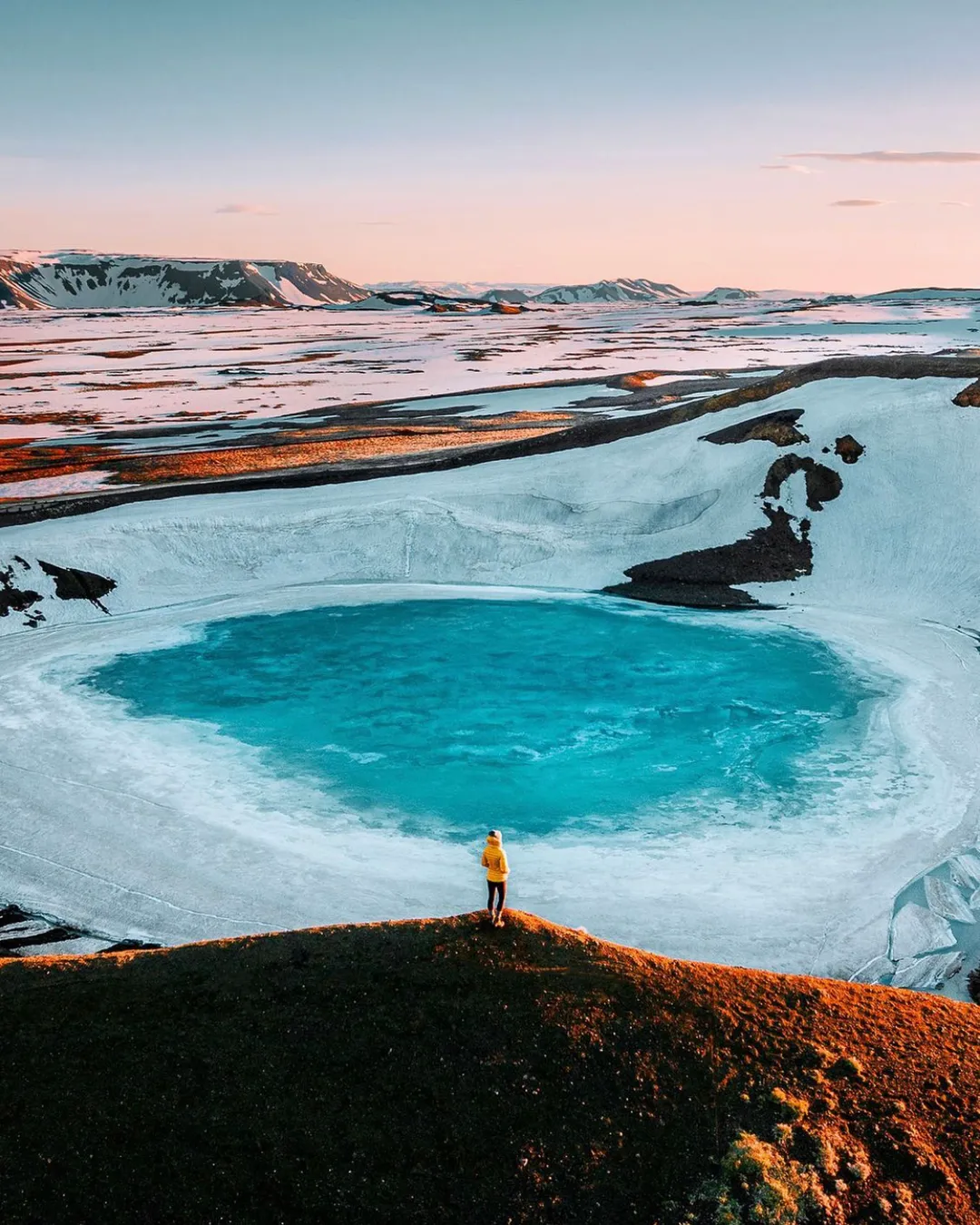 Volcanic crater filled with blue water