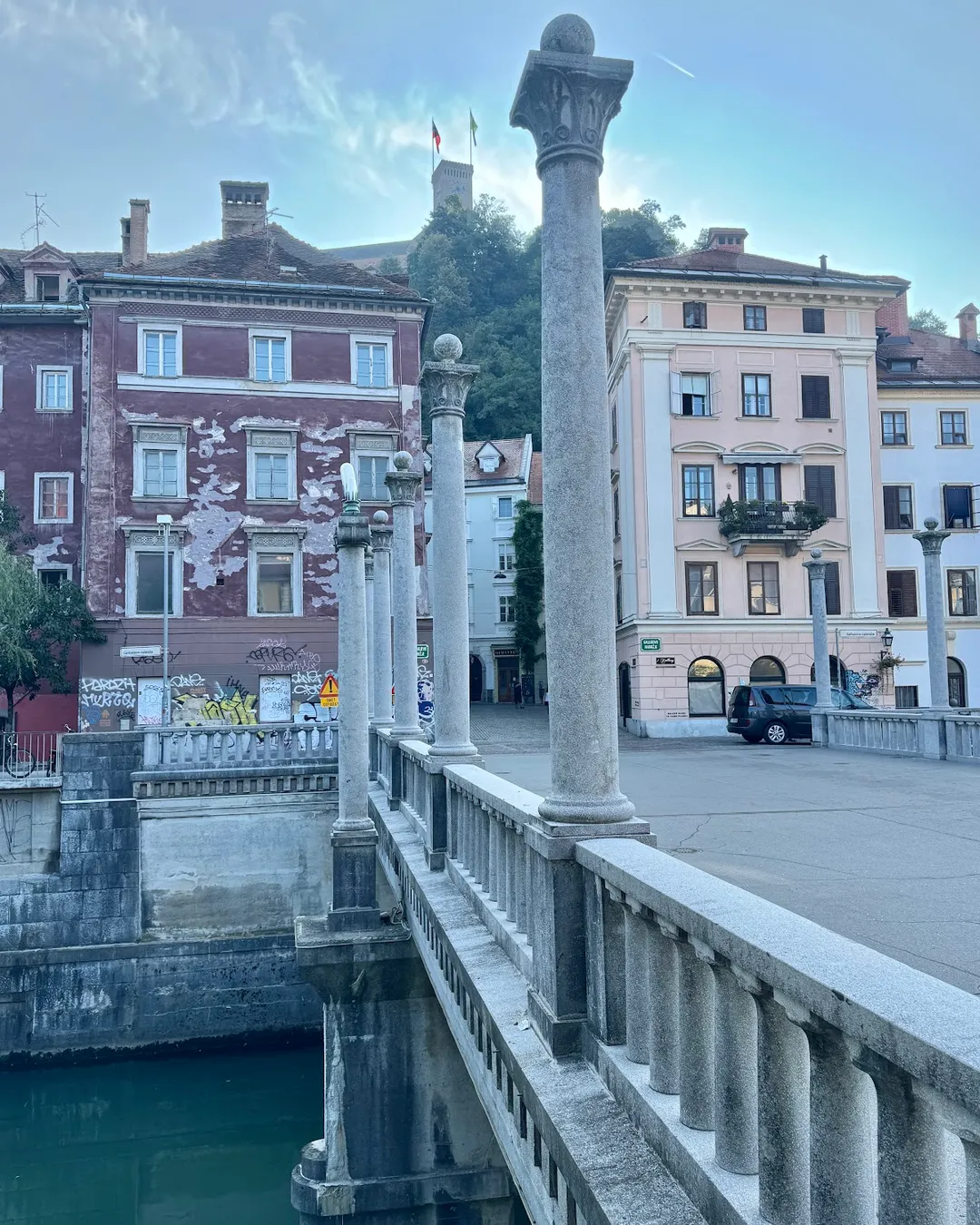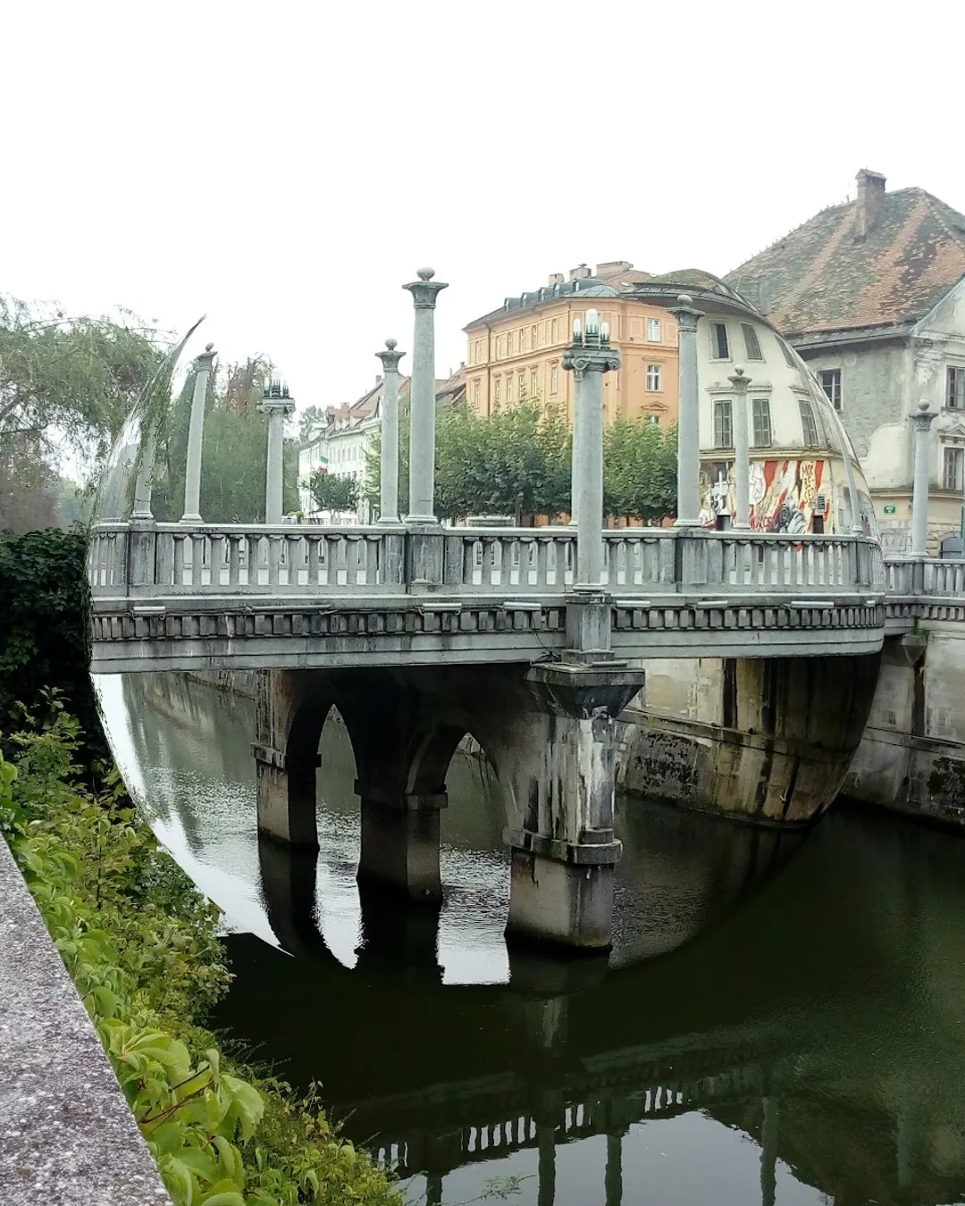 Historic pedestrian bridge in Ljubljana
