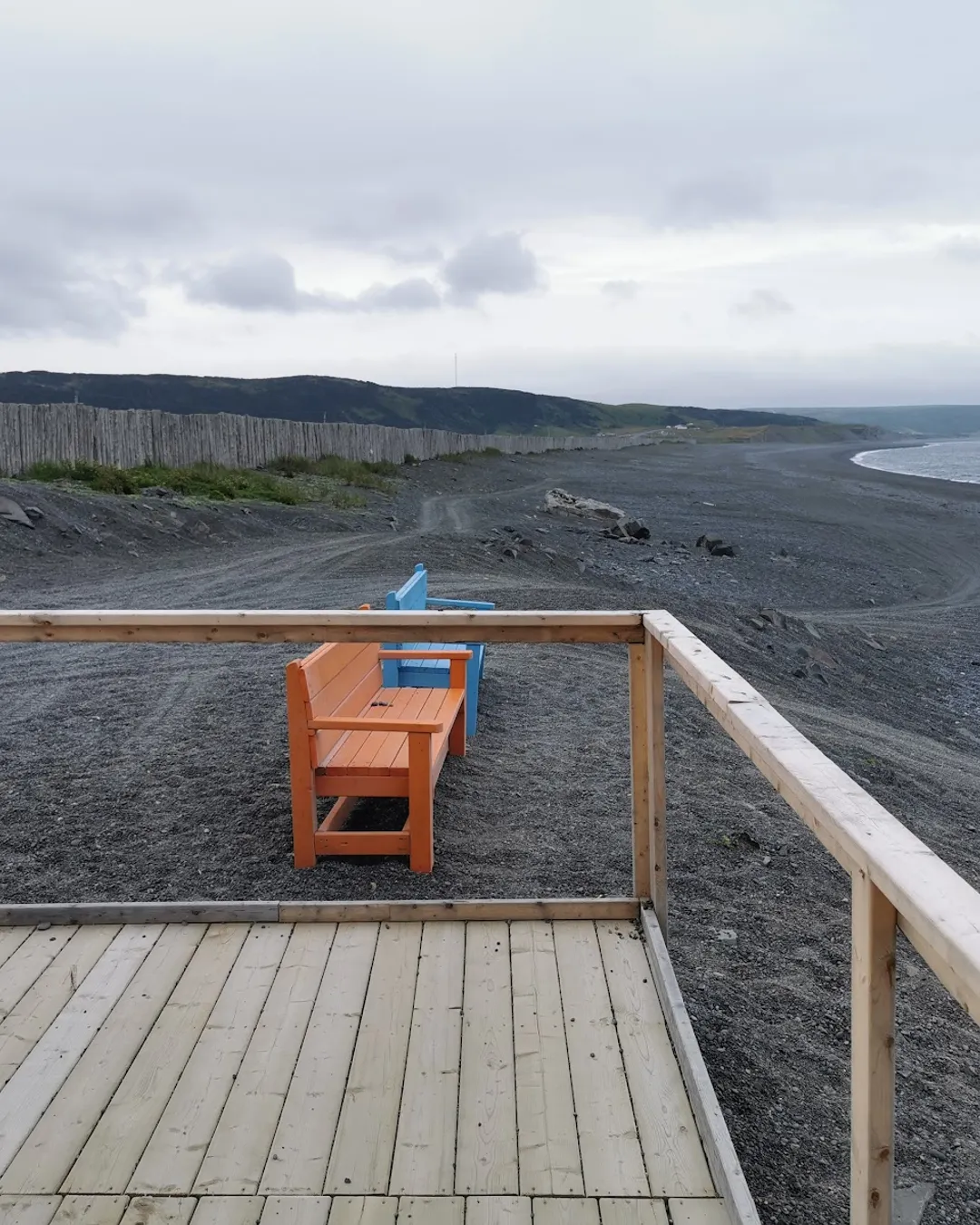 Holyrood Pond is a massive freshwater pond separated from the wild Atlantic by a wide pebble beach. It is right across the famous St. Vincent's beach which offers world-class shoreline whale watching. You can spend some time beachcombing, try your luck with some fishing, or simply soak in the incredible views — there's a small interpretation centre and washrooms right by the parking area, making it an easy stop.