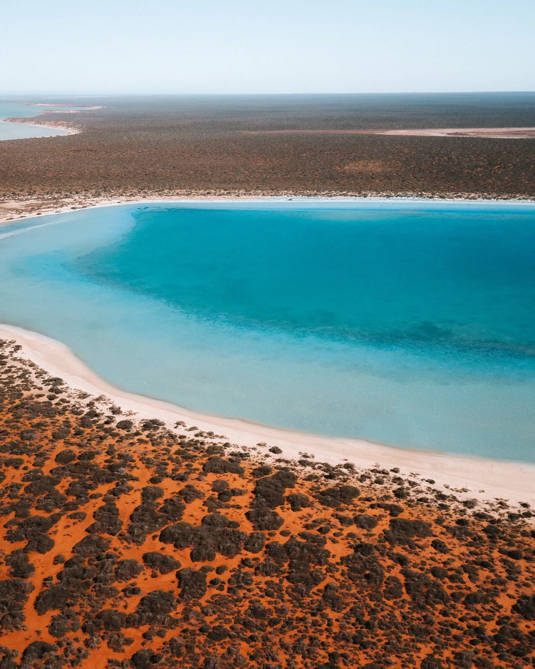 Blue lagoon surrounded by red landscsapes