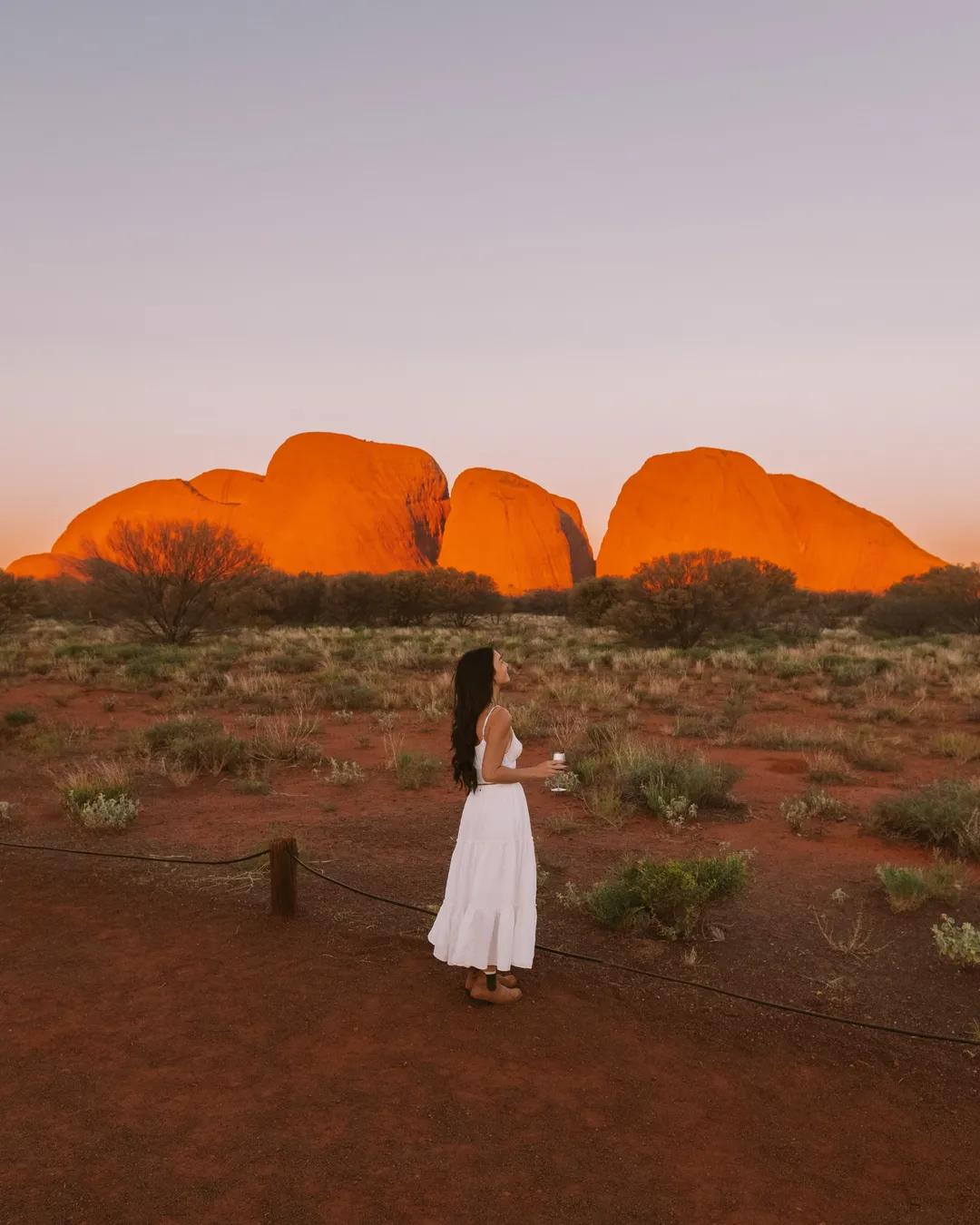 If you’re heading out to Kata Tjuta, I highly recommend staying for sunset. It'll be one of the most magical evening views you'll experience. From this viewing area, you’ll get an epic view of Kata Tjuta and all its domes as they light up in an incredible array of colours, shifting as the sun dips lower. The rocks glow a deep, rich red before slowly fading into soft pastel pinks and purples. It’s breathtaking in person, and your photos will turn out beautifully. This ended up being one of my favourite sunsets in Uluṟu-Kata Tjuṯa National Park, and it felt much quieter and more peaceful than the popular sunset spot at Uluṟu.
