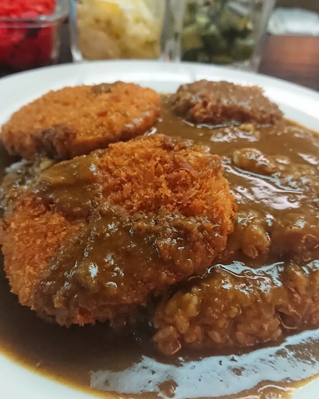 Locals describe the curry as being "European" but we still feel that the curry sauce is still a more Japanese style with Indian flavour whilst the croquettes & crumbed kushikatsu toppings are definitely Japanese.