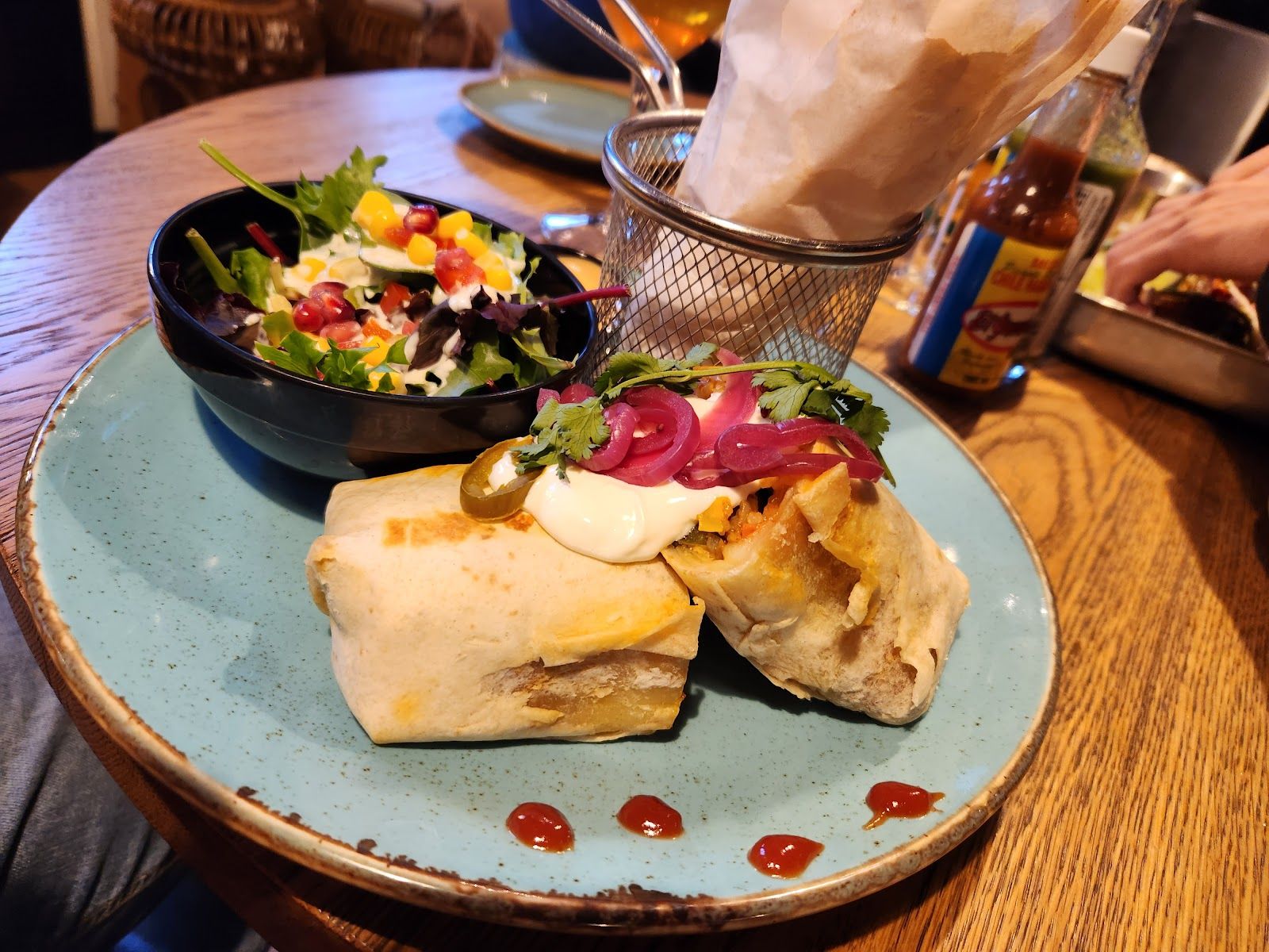 Restaurante mexicano vibrante com comida deliciosa