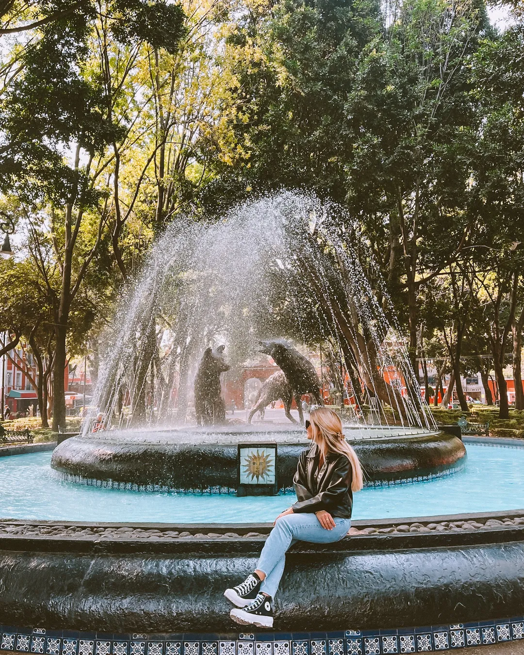 Bronze fountain in the heart of Coyoacán