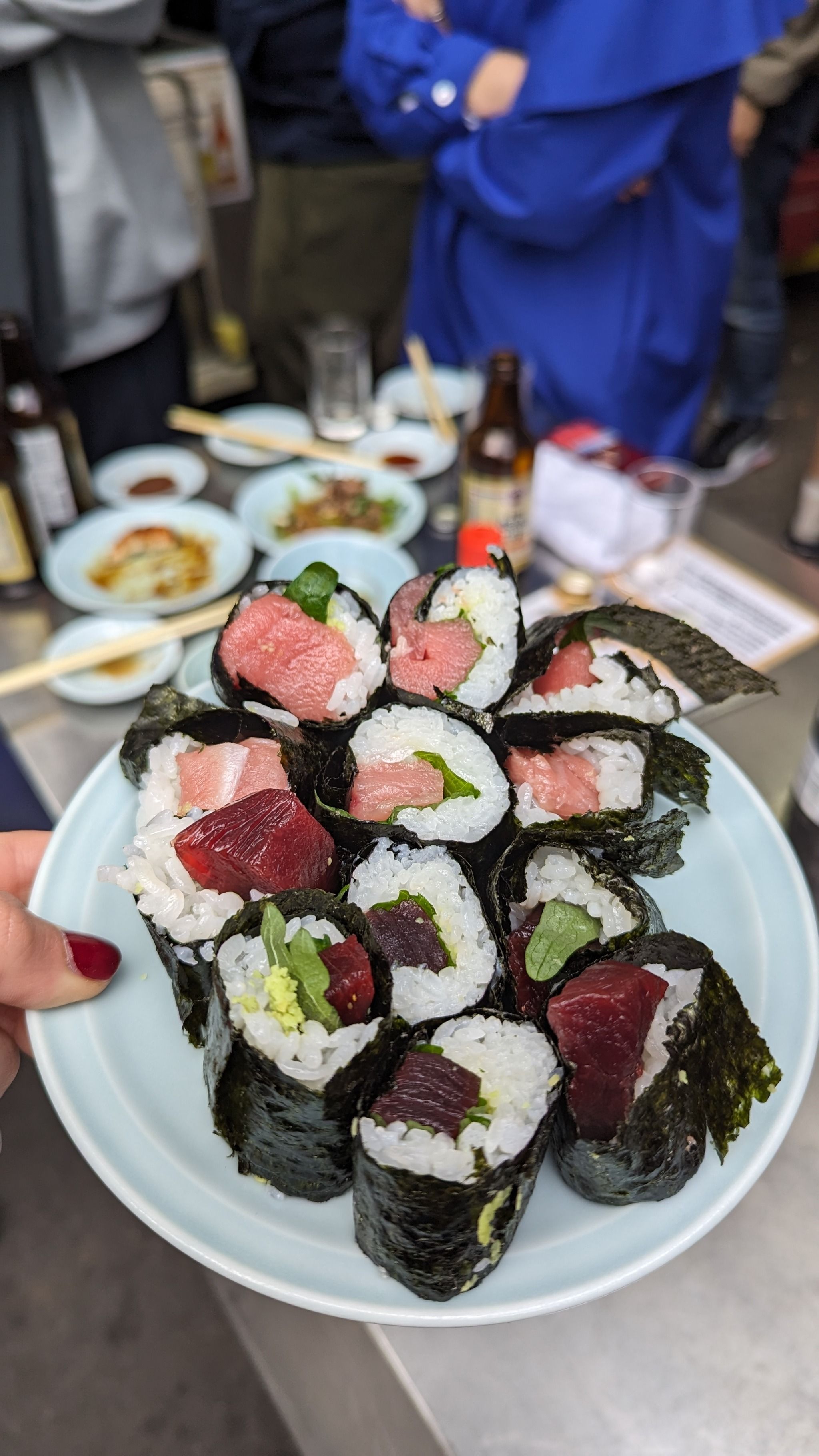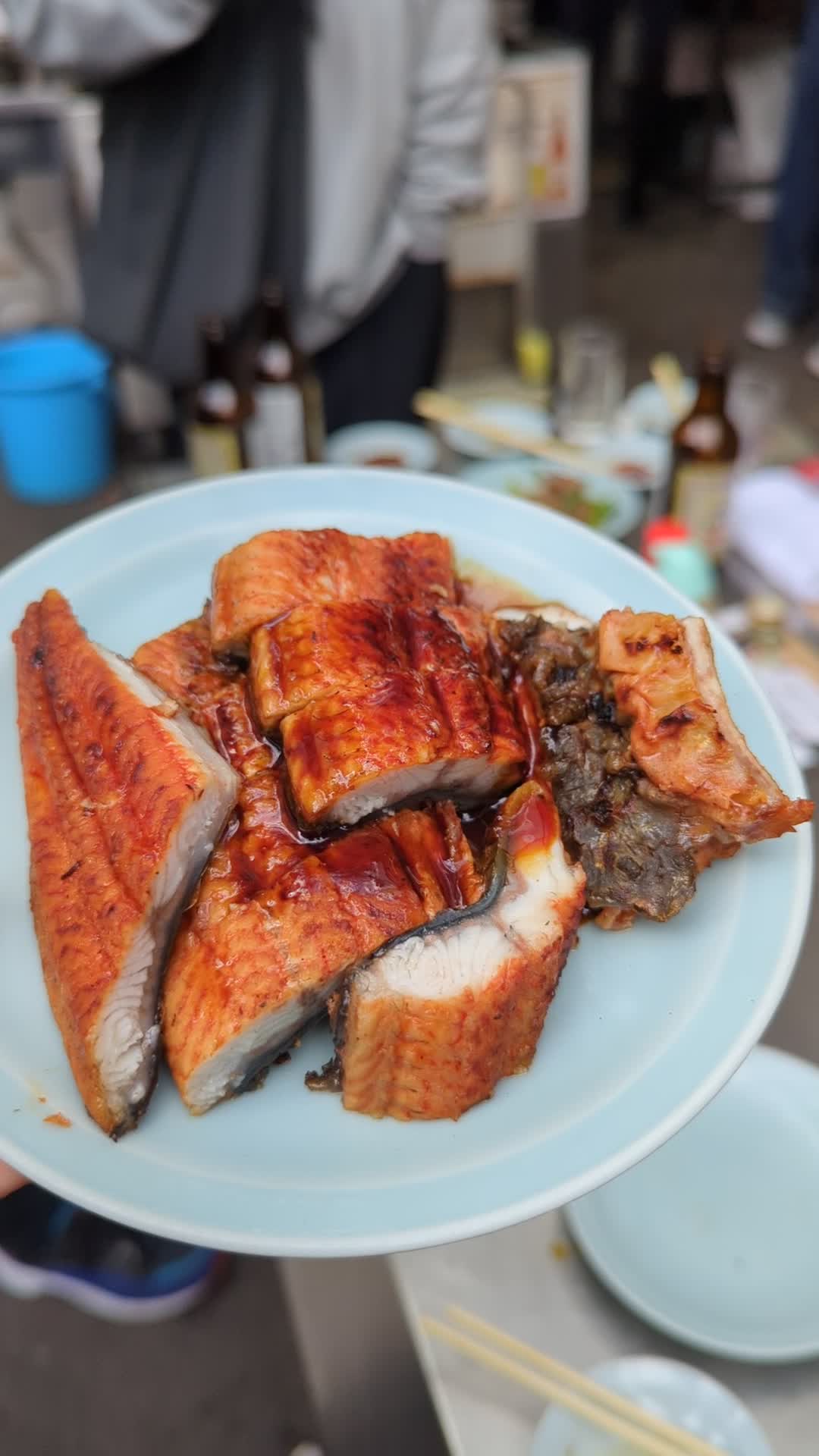 Izakaya Toyo is a tachinomi (drinking while standing) seafood izakaya in Osaka, Japan that has gained global notoriety thanks to its appearance on the Netflix show Street Food: Asia. Not only does the eatery offer a great selection of sushi, sashimi, and grilled dishes, but its star dish - the broiled tuna cheek - is served with an impressive show. The chef Toyo-san sets off a dramatic flamethrower-style attack on the grill to make this dish, drawing eyes from passersby in the area. Order the fatty tuna set menu for a plate of sashimi, sushi, and caviar, or try an appetizer of eel and cucumber sushi rolls. People looking for entertainment and delicious Japanese food should look no further than Izakaya Toyo.