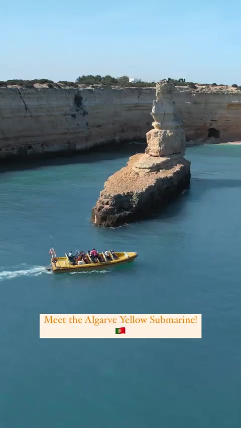 The Algarve Yellow Submarine Rock Formation is a unique and stunning natural wonder located in the coastal town of Porches, Portugal. This distinctive rock formation is named for its resemblance to a yellow submarine, with a cylindrical shape and a pointed top that seems to pierce through the water's surface.