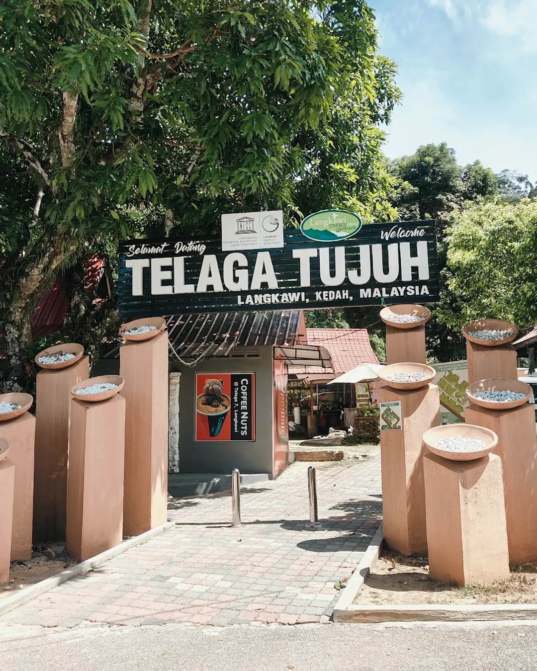 Scenic waterfall with seven natural pools
