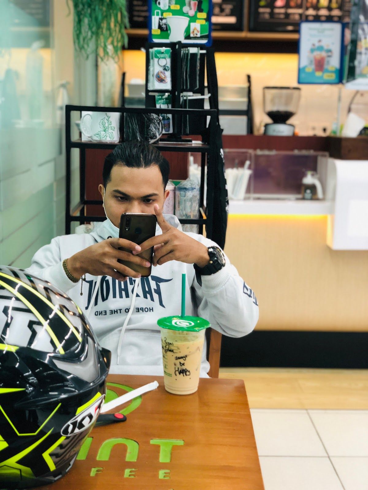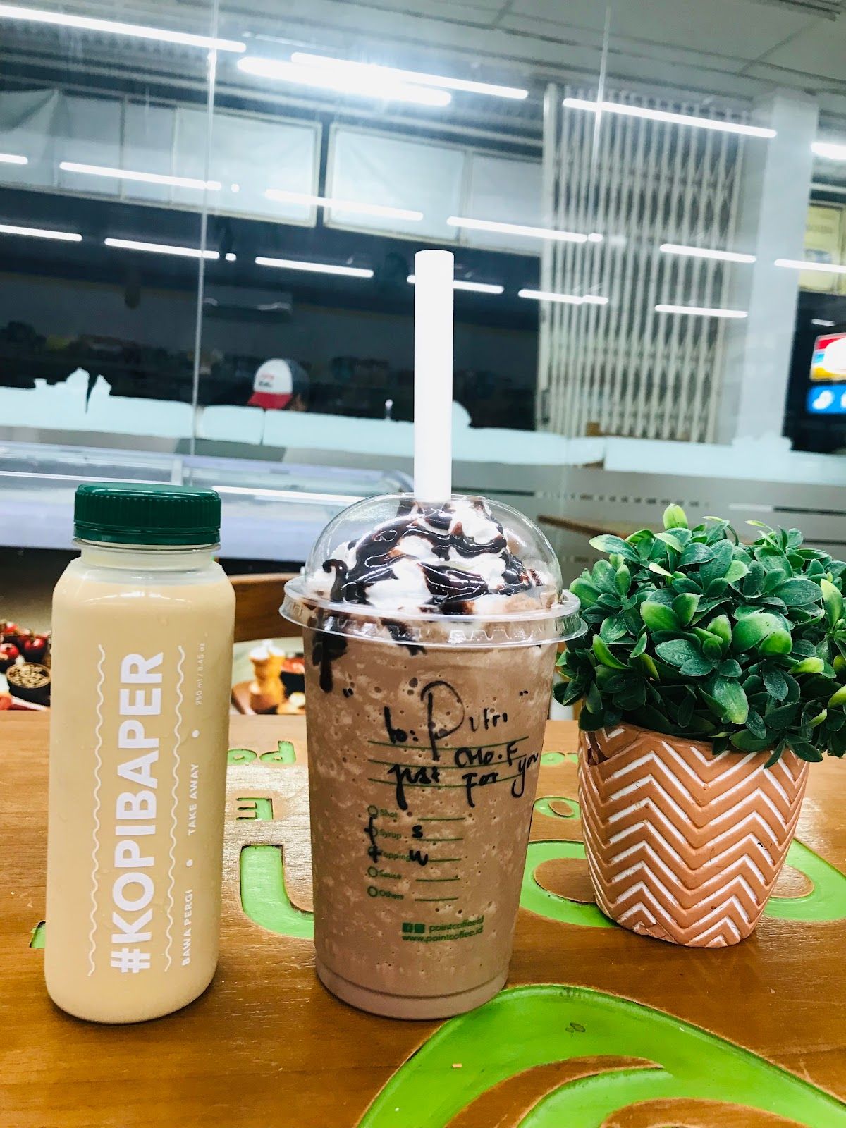 This is such a good hack if you want to grab a quick and really cheap coffee! These mini cafes are usually all inside Indomaret (a convenience store) and they actually have oat milk and lots of options! They're pretty good! We always use these when we're travelling somewhere and want to grab a coffee on the way!