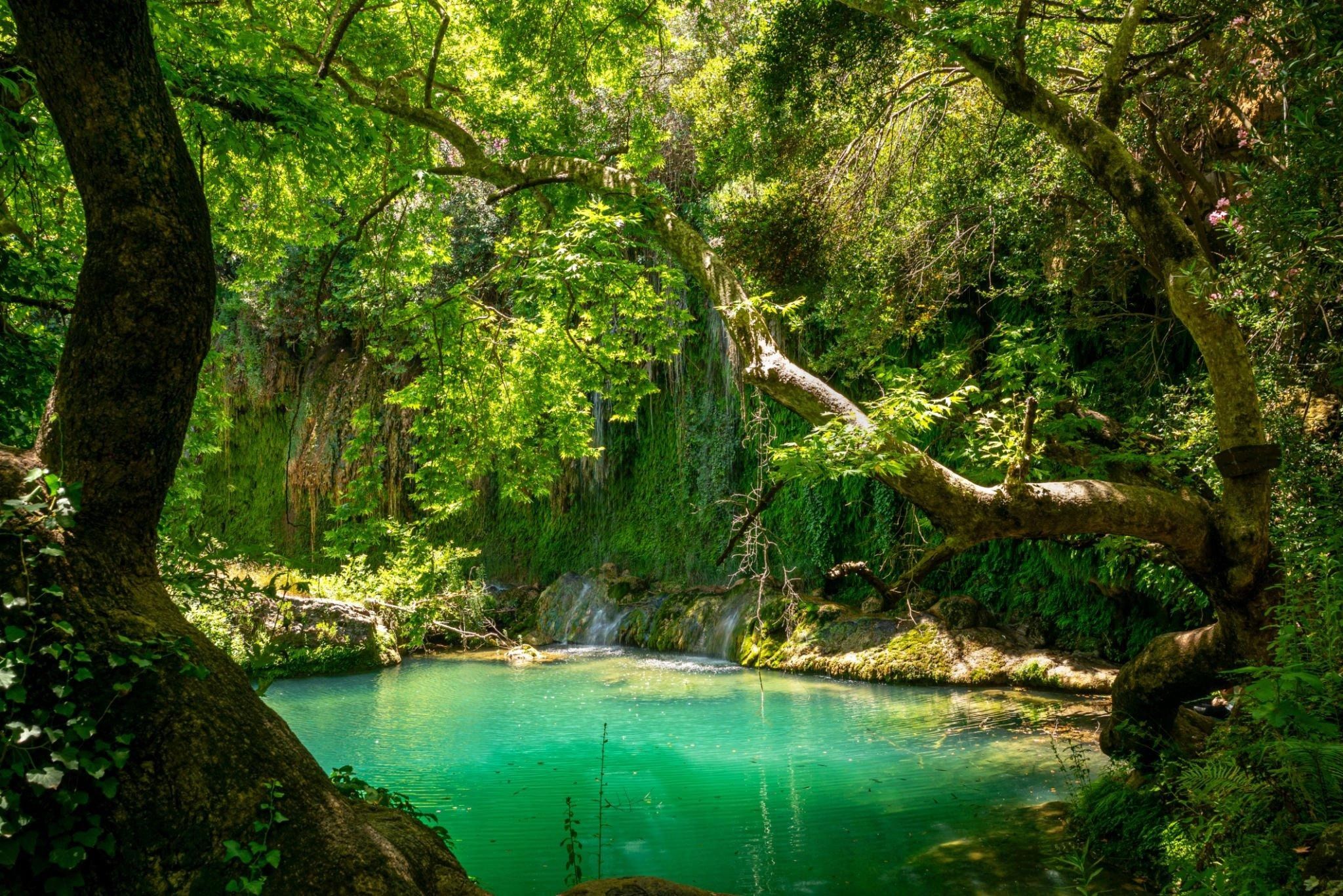 Surrounded by lush forest and turquoise pools