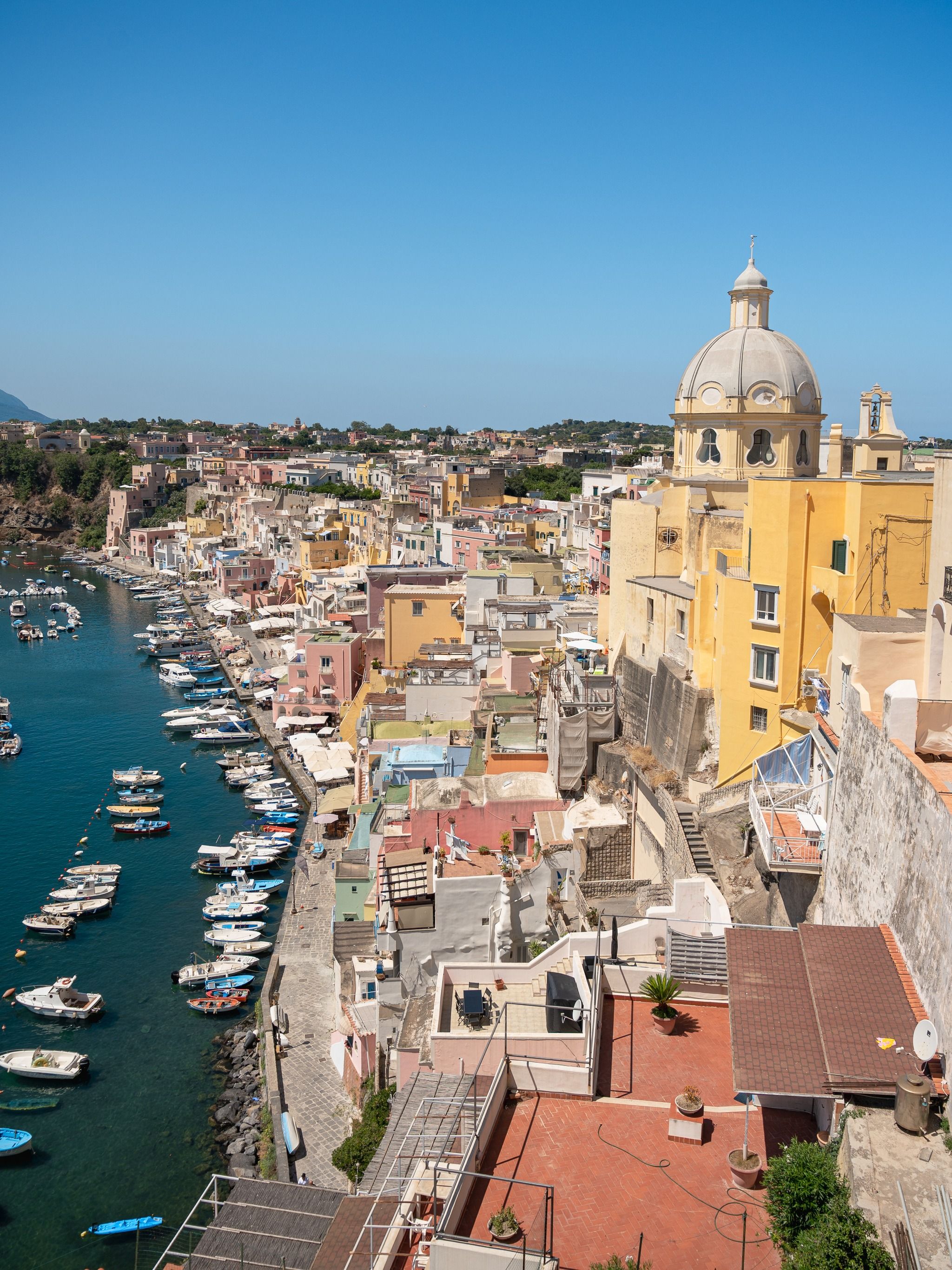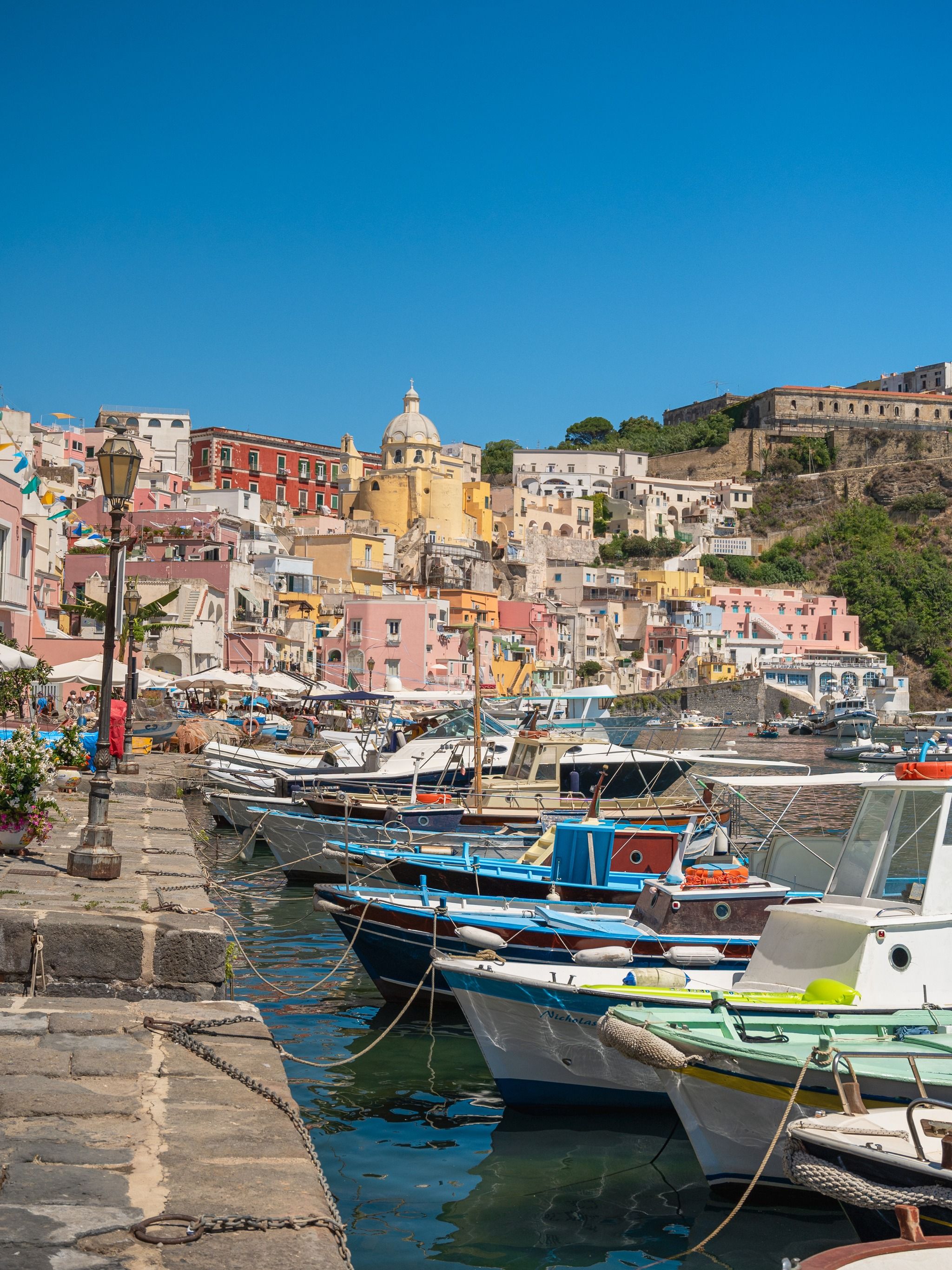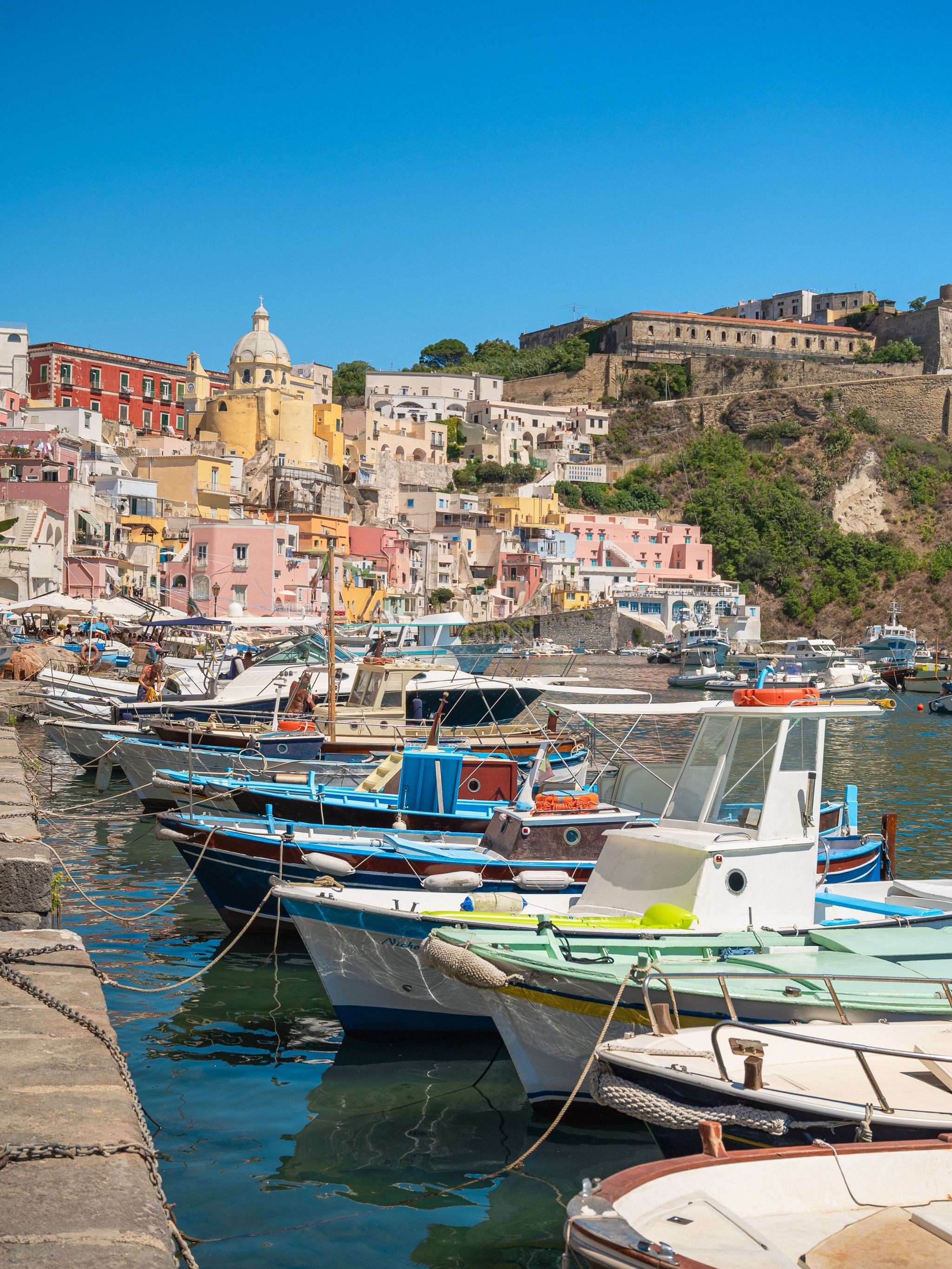 Procida is a charming island off the coast of Naples and it's known for its picturesque landscapes and rich history. Very easy to reach from Naples, you can take the ferry from either "Molo Beverello" or "Porta di Massa" and it will take you about 40 minutes to reach the island.