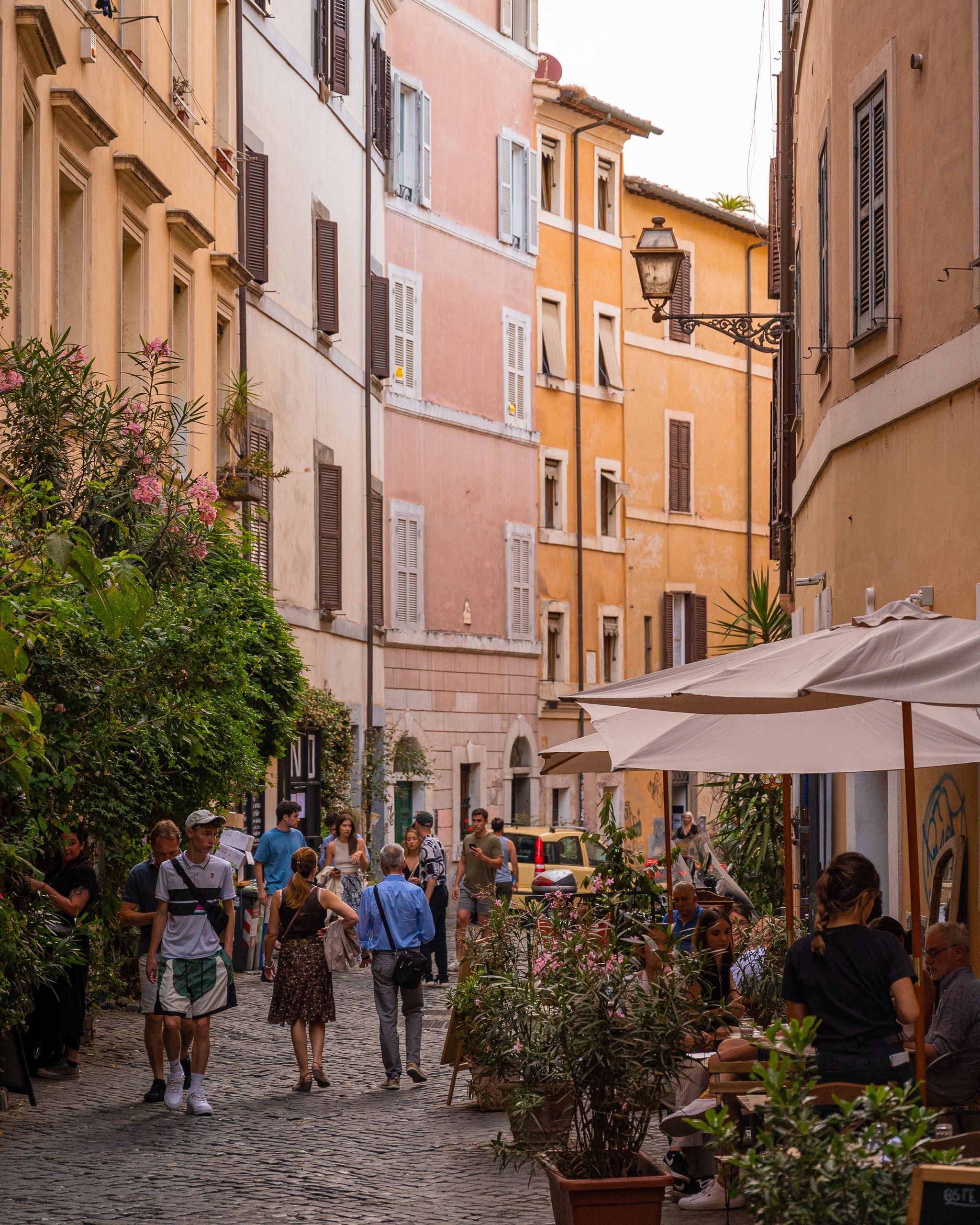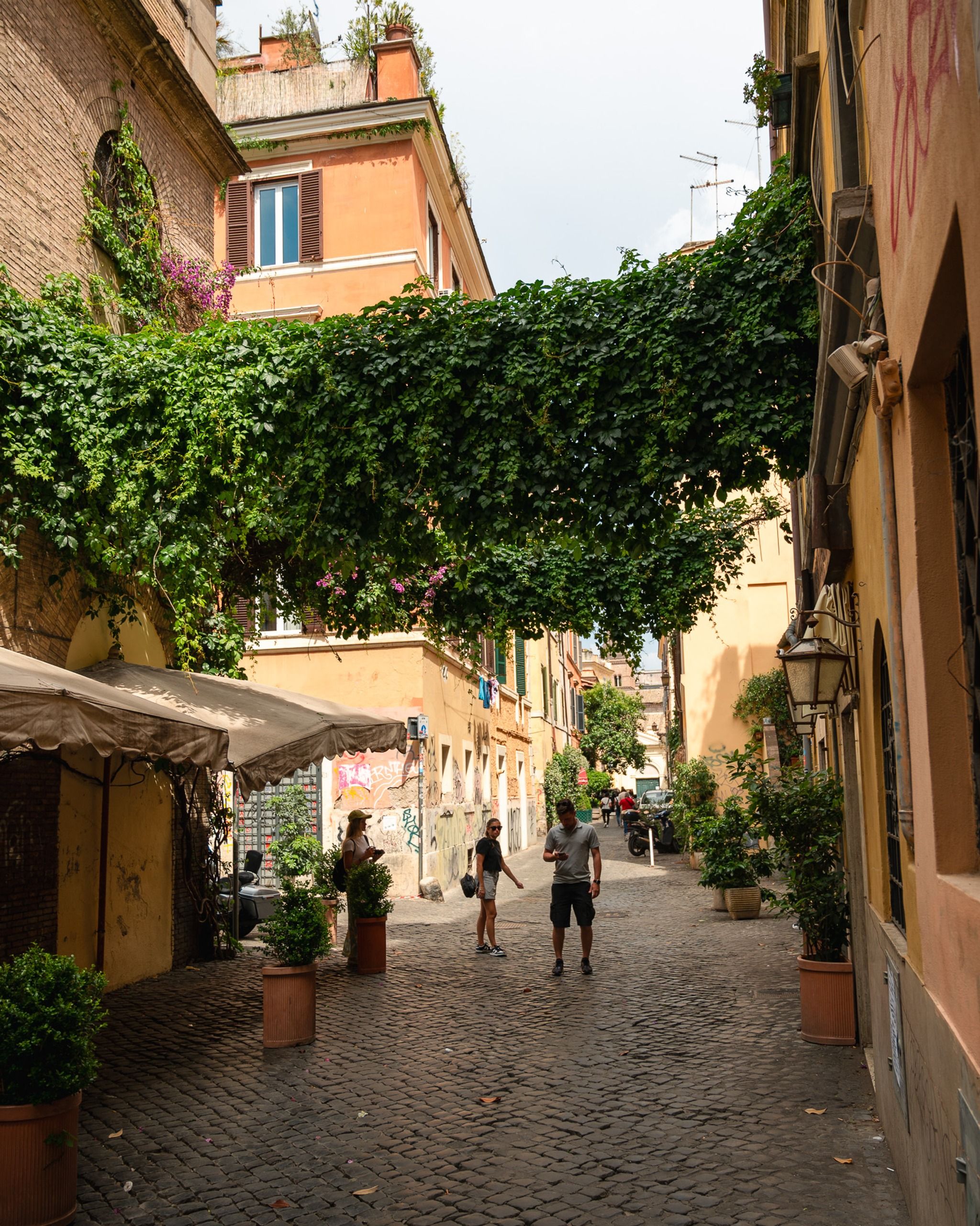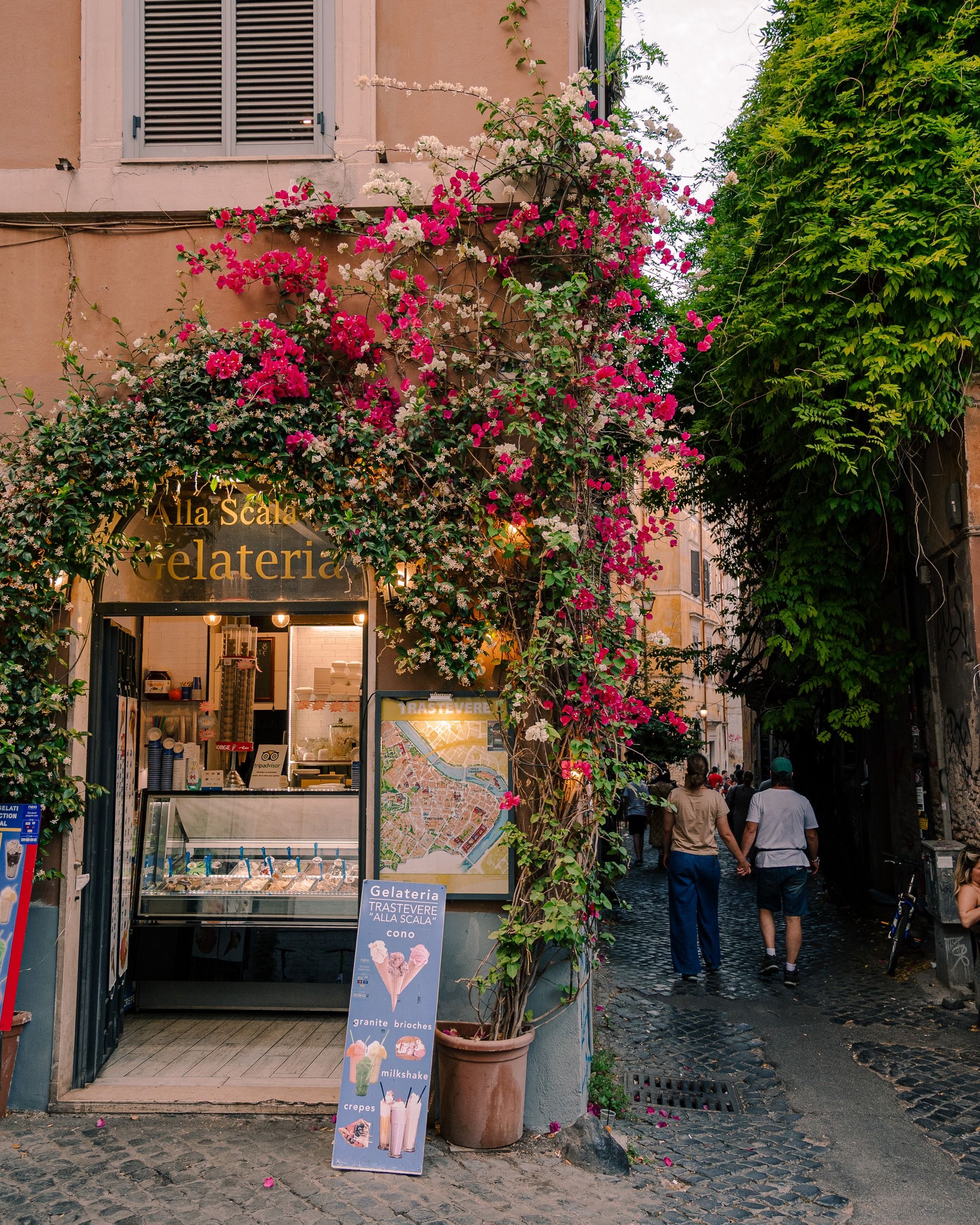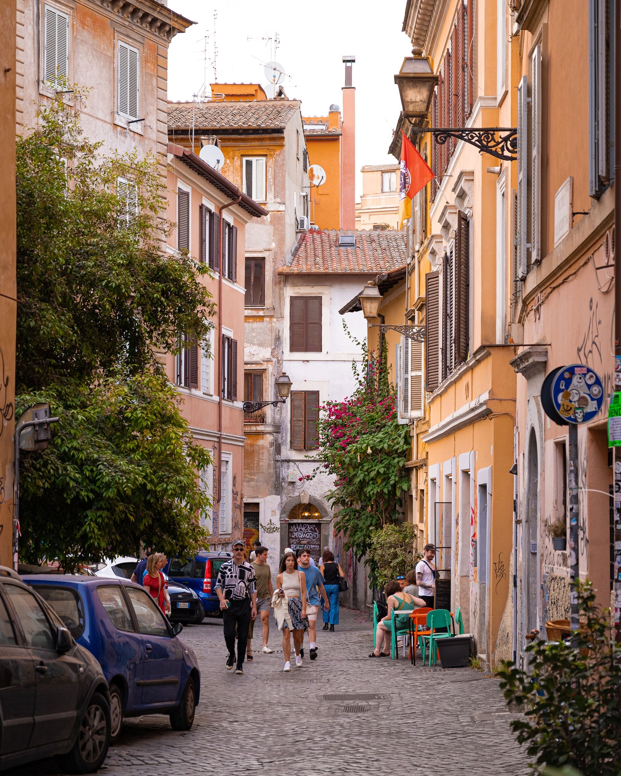 I really enjoy strolling through its characteristic narrow streets and discovering new corners of this beautiful area. On the map, I've marked some of my favorites, just to give you an idea of which direction to head. I've often visited this area in June when the bougainvillea is in bloom, enhancing the beauty of the area with its intense fuchsia color. I highly recommend Trastevere as a place to stay; there are countless things to do, and it's perfect for evening outings.