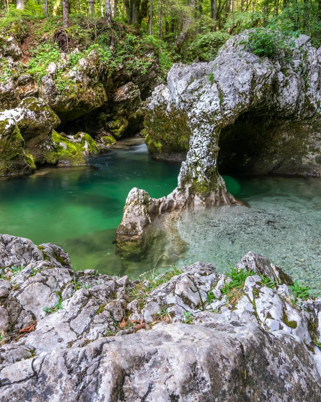 La Gola di Mostnica ĆØ un tratto di circa 2 km lungo il fiume alpino Mostnica, scavato in profonde forre (fino a 15 m) e punteggiato da piscine verde smeraldo e cascate. Il percorso offre un’immersione in foreste muschiose e spettacolari erosioni rocciose.