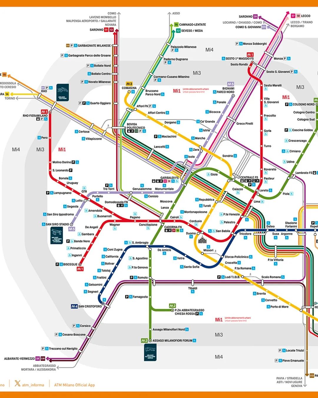 Milan’s public transport network is extensive, efficient and one of the easiest ways to explore the city and reach Olympic venues, neighborhoods and major attractions. The system is run by ATM (Azienda Trasporti Milanesi) and includes metro lines (M1 red, M2 green, M3 yellow, M4 blue, M5 purple), a dense network of buses, trams and trolleybuses, and the suburban rail system including the Passante and S lines. All these services connect central Milan with surrounding areas and important locations like Rho Fiera and Assago.
