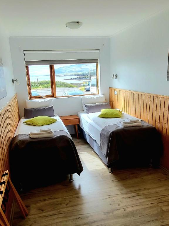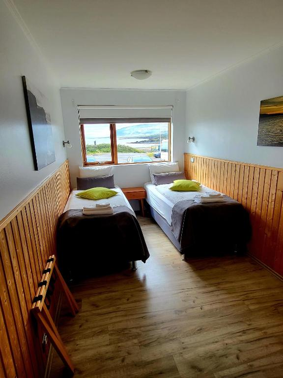 Hótel Flókalundur is a small hotel in Vatnsfjörður, on the south coast of the Westfjords. The hotel was built in 1966 by the Local Region Association Barðstrendingafélagið, but prior to that, a restaurant was in operation on this location since 1961 and Vatnsfjörður has always been a popular visiting place for tourists in the area. Hotel Flokalundur has 27 single or double bedrooms and one suite. All rooms are equipped with a bathroom. All rooms are fully furnished and breakfast is included in the price. One room is accessible by wheelchair. A small Restaurant is located at Hotel Flokalundur and is open every day from 7:30 till 23:00 for all guests in the area. A Breakfast Buffet is served from 07:30 till 10:00. Lunch is served from 11:00 till 14:00 where the Meal of the Day is available, along with a menu of small dishes that can be ordered through the whole day. Dinner is served off the Dinner Menu from 18:00 till 21:00 with emphasis on fresh seafood, local game and other meat dishes. The Restaurants offers a selection of alcoholic beverages. The bar is open until 23:00. The Camping Site, with it’s beautiful view over the fjord, is situated close to the Hotel. On the Camping Site there is ample space for tents and camping trailers. There is access to electricity and in a Facility Hut there are WC, hot and cold water faucets, showers and facilities for dishwashing. The Camping Site is open from June 15th till September 10th. Next to the hotel we have a small fuel station (automatic pumps) and a minimarket that is open between 11:00 and 18:00 during the summer.