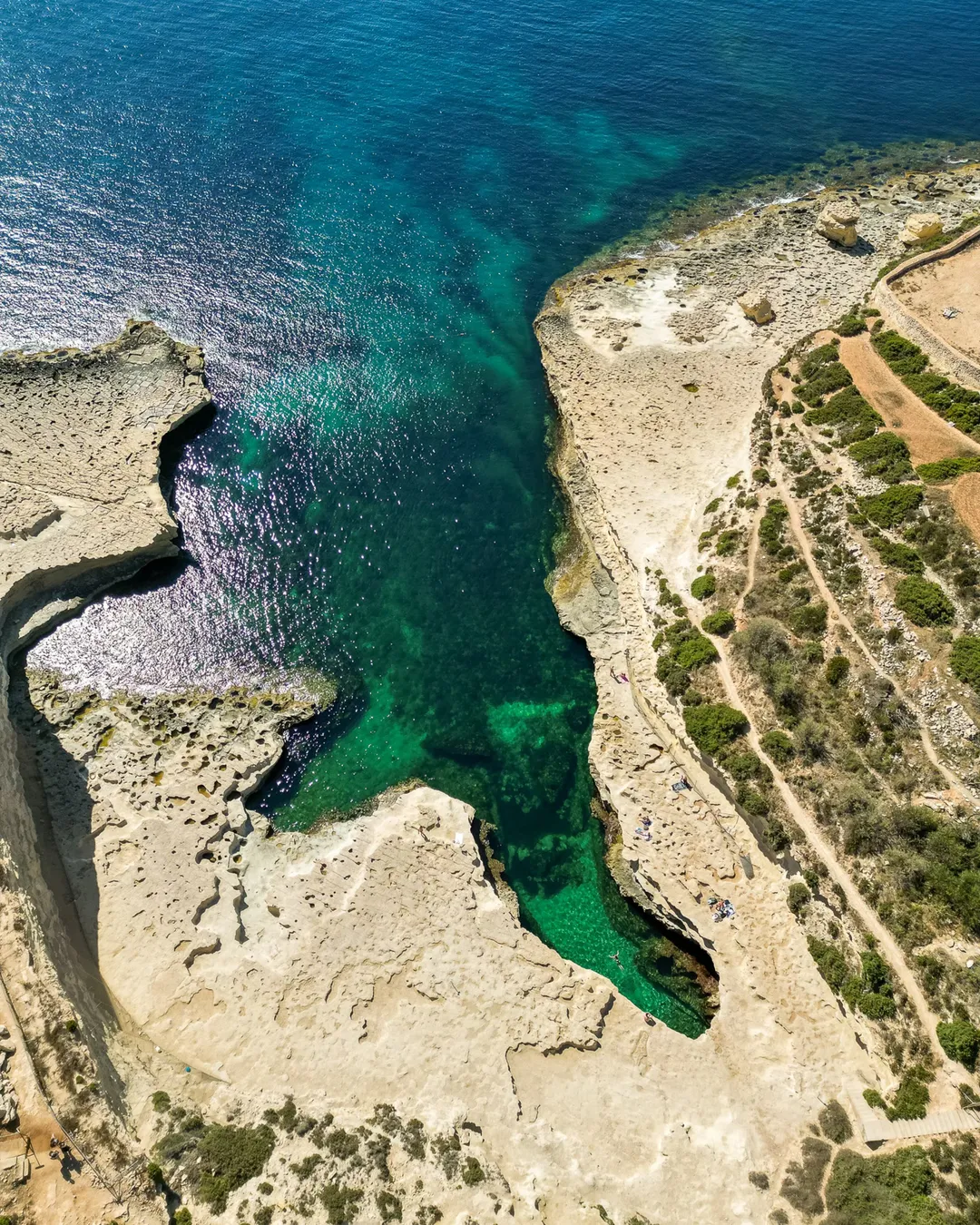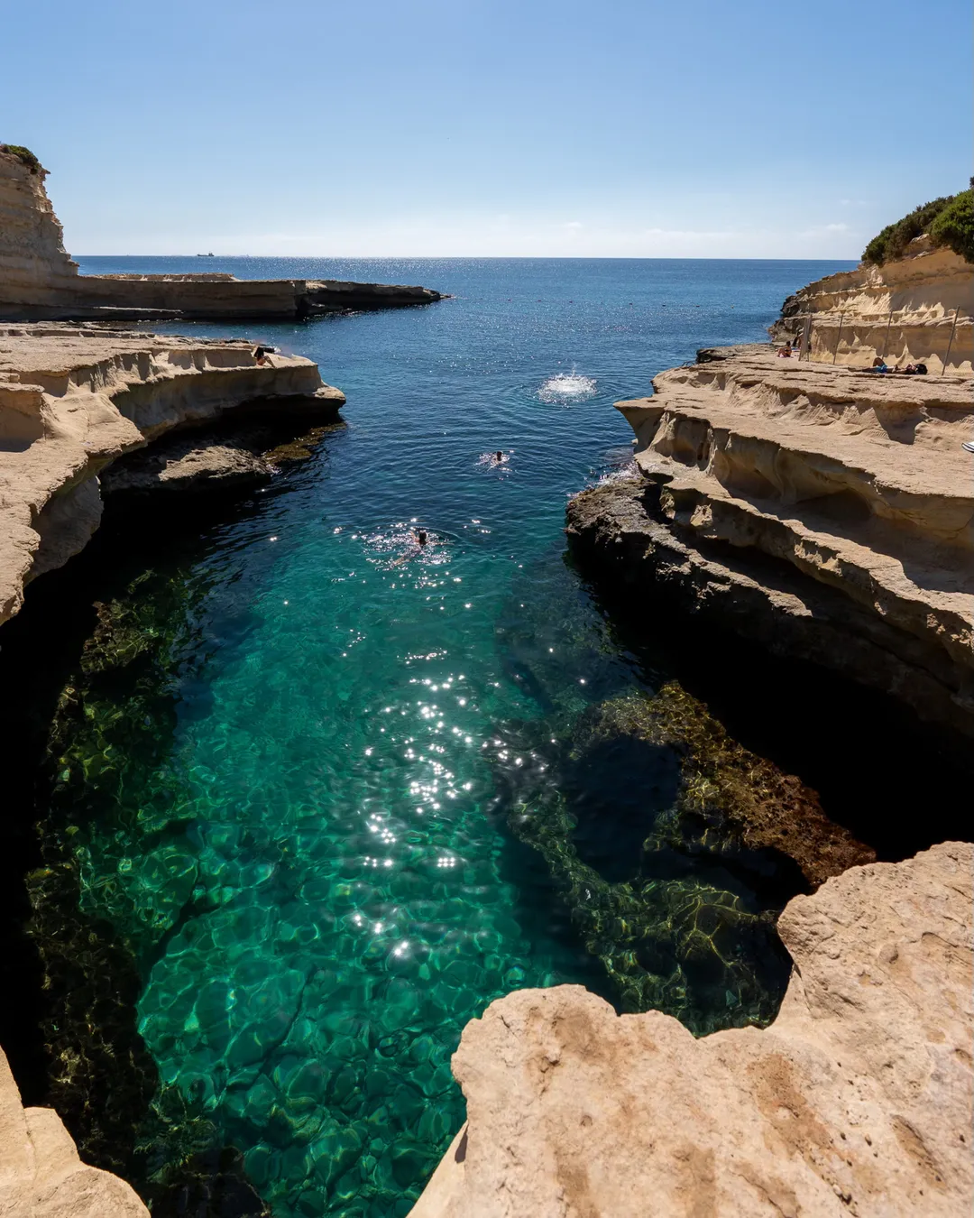 Discover one of Malta's most beautiful natural swimming spots, St. Peter's Pool, a stunning inlet of turquoise water perfect for a refreshing dip, snorkeling and some exhilarating cliff jumping from the surrounding flat rocks. Tucked away at the tip of the Delimara peninsula, it's a bit of a local secret, though it gets lively in the summer.