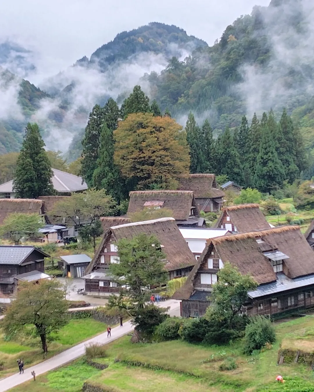 Ainokura is a small, preserved village in the Gokayama area, surrounded by mountains and forest. The houses are built in the gasshō-zukuri style, with steep thatched roofs designed to handle heavy snow. Walking through the village feels slow and quiet, especially early in the morning or late afternoon when tour buses leave. It is much calmer than Shirakawa-go and feels more lived-in, with a few houses still occupied by locals. The setting is simple and very atmospheric, especially in autumn and winter.