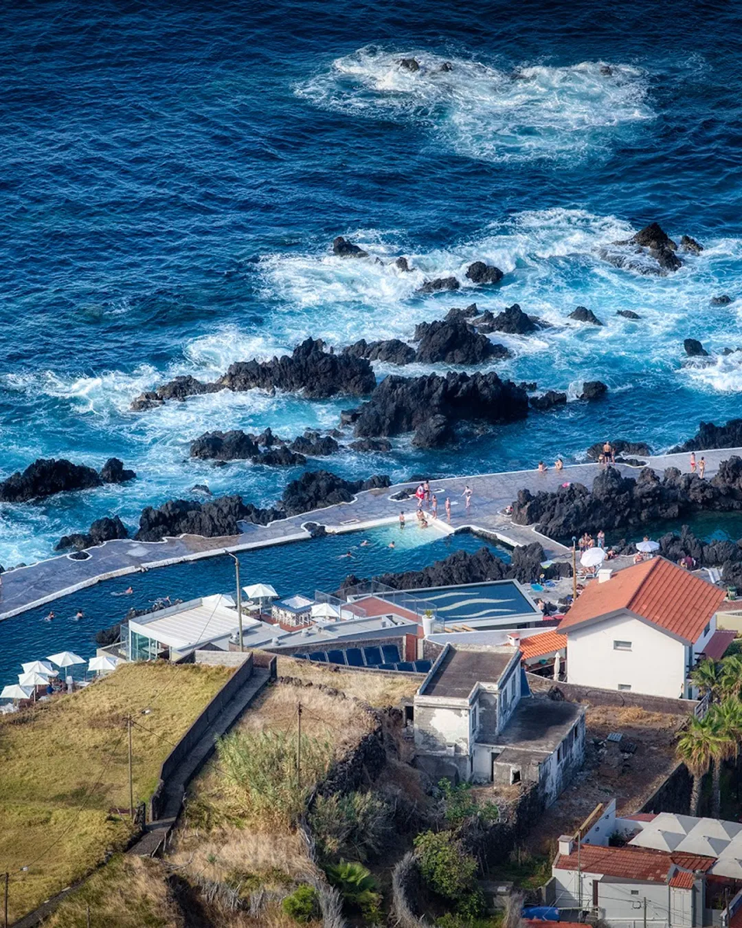 "Porto Moniz was once a remote fishing village, famous for whaling in the 19th century. The pools were naturally formed by volcanic lava flows and later adapted into a semi-protected lido. While it’s now a major tourist stop, locals still come here early mornings or evenings to swim, fish, or simply watch the waves smash into the black cliffs."