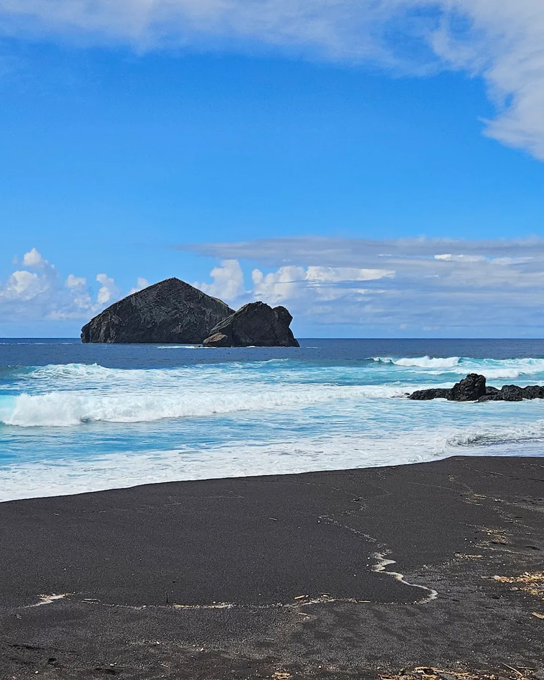 It's a beloved spot for surfers, but also wonderfully calm for a simple walk along the shore, feeling the unique dark sand between your toes.