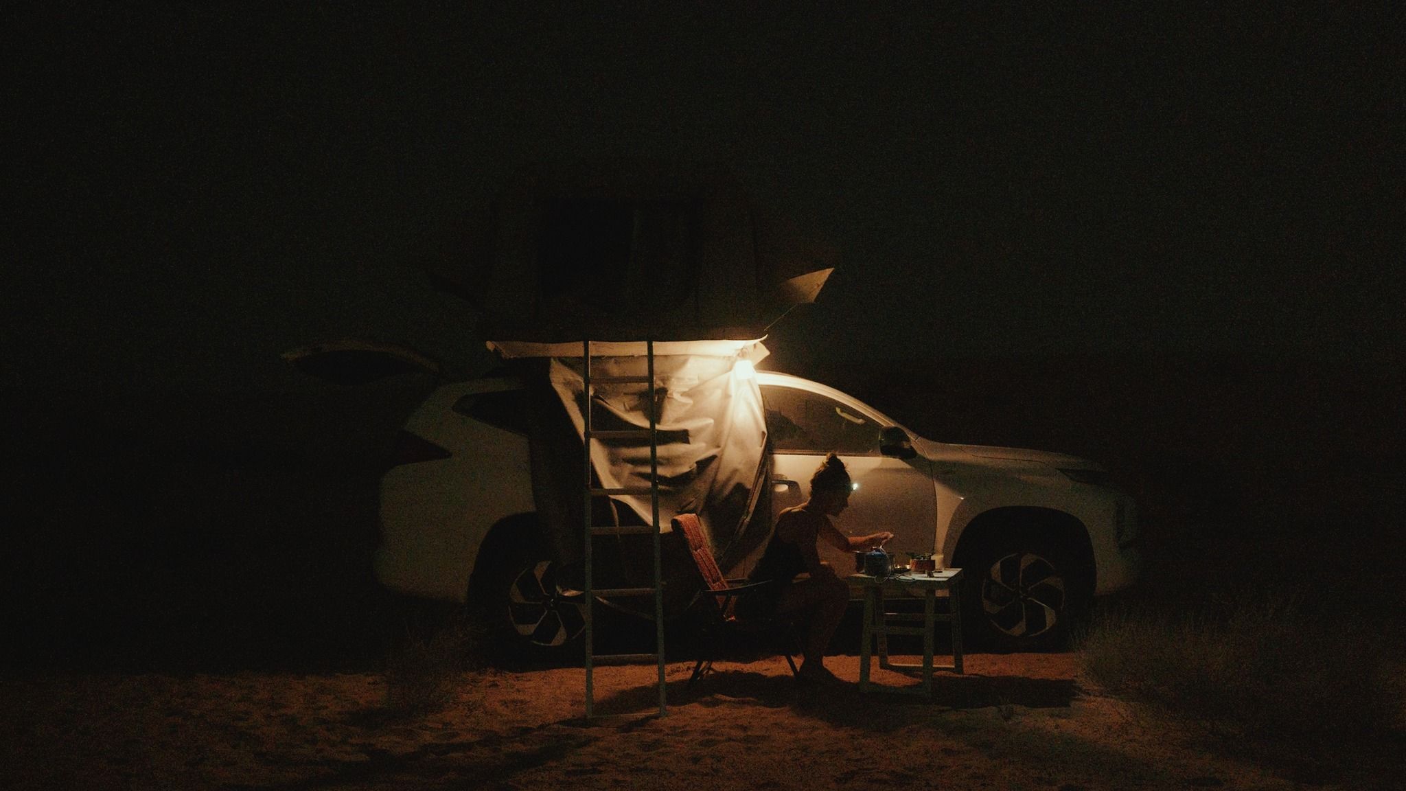 I chose a spot with some distance from the main track but not so far that I’d be completely isolated. It felt remote, quiet, and honestly, surreal. Camping COMPLETELY alone surrounded by sand was a very special experience.