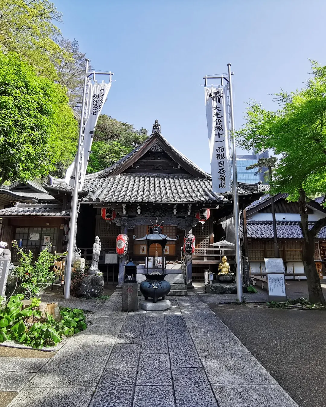 Temple bouddhiste de l’école Jōdo situé à Meguro, connu pour son escalier de pierre bordé de 500 statues de rakan (disciples de Bouddha), toutes différentes. Fondé au XVIIe siècle, il est également un lieu de mémoire pour les victimes de l’incendie de 1772. Atmosphère paisible et peu touristique, proche de la station Meguro.