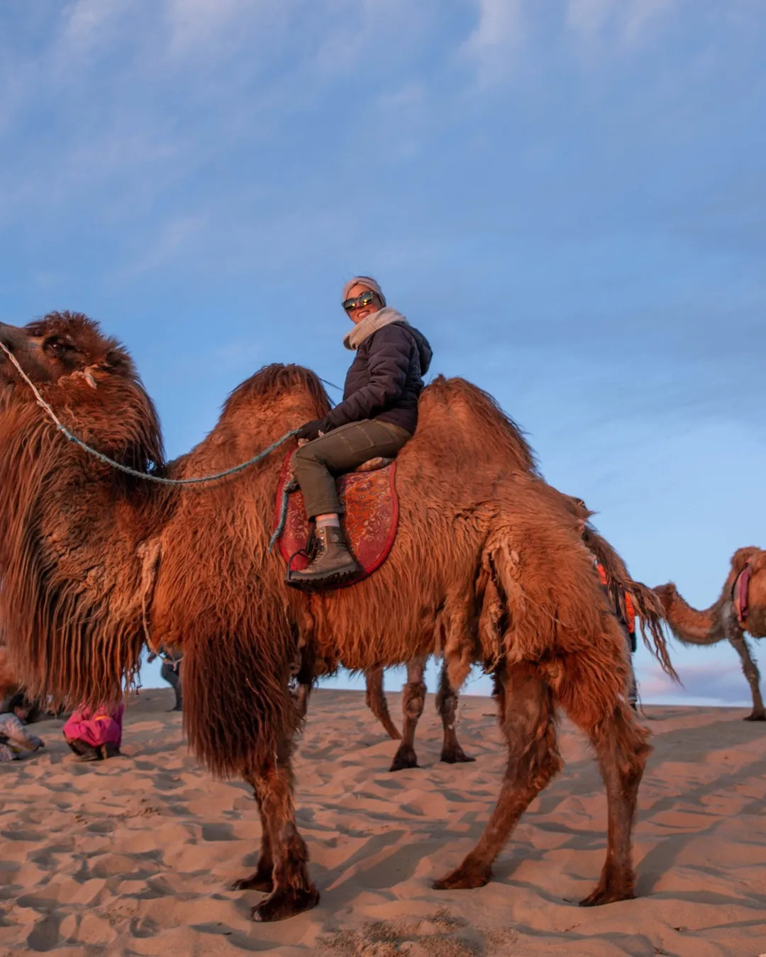 Elsen Tsarkhai: Mini Gobi Landscape with Camel Riding Across Dunes