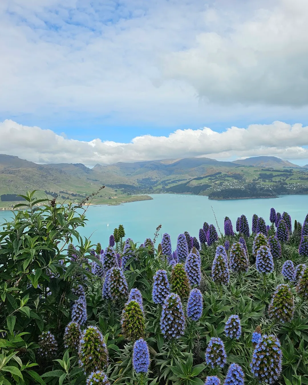 It’s an easy stop along the road with a small parking area, making it perfect for a quick photo break. On a clear day, the contrast between the deep blue harbour and the rolling green hills is stunning.