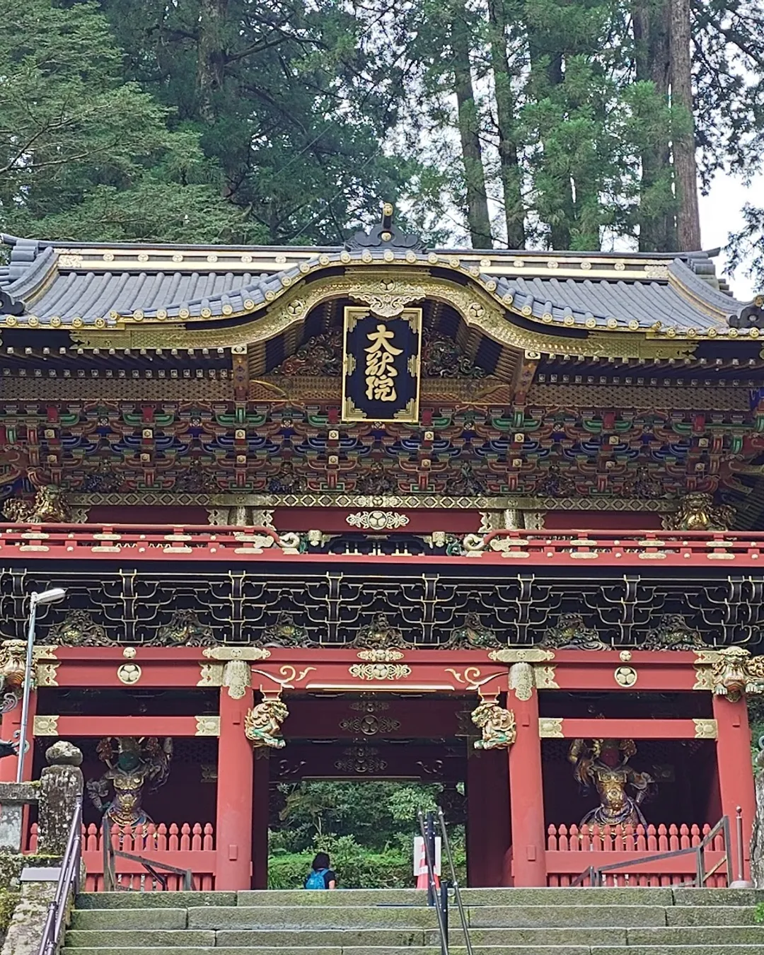 Le bâtiment principal, le Sanbutsudō, abrite trois grandes statues dorées représentant les divinités des montagnes sacrées de Nikkō. Le complexe comprend également des salles aux trésors, des jardins et plusieurs sous-temples que l’on peut parcourir à pied.