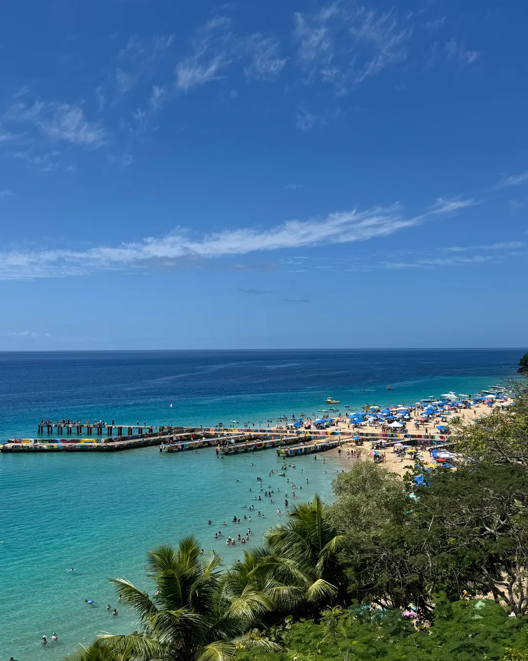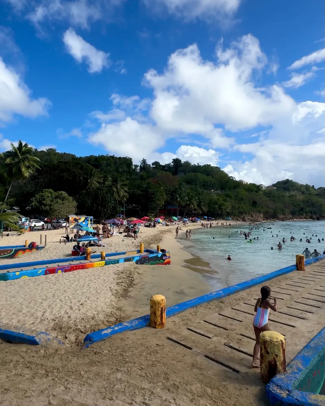 One of the beach’s most iconic features is its long, vibrantly painted wooden pier stretching out into the sea. It’s a hub of activity — people fish from it, jump off it into the crystal water below, and gather on it to watch sunsets. The pier is arguably the most photographed spot in Aguadilla.