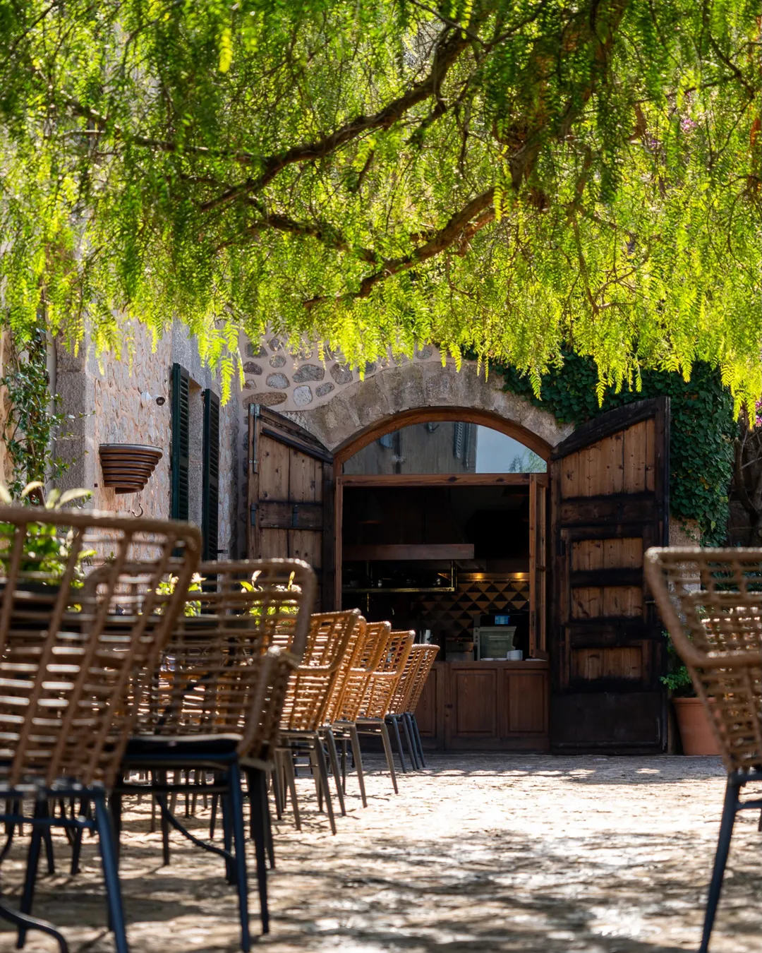 Tucked away in the Serra de Tramuntana mountains with breathtaking views over the Sóller valley, this restaurant offers a truly memorable dining experience. The journey to get here is part of the adventure, involving a drive up a narrow, winding road. Once you've parked amongst the olive groves, a short, few-minute walk up a flight of steps will lead you to a stunning terrace. Here, you can indulge in exquisite Mediterranean and fusion cuisine, crafted from the freshest local and seasonal ingredients, making it a perfect spot for a special occasion.
