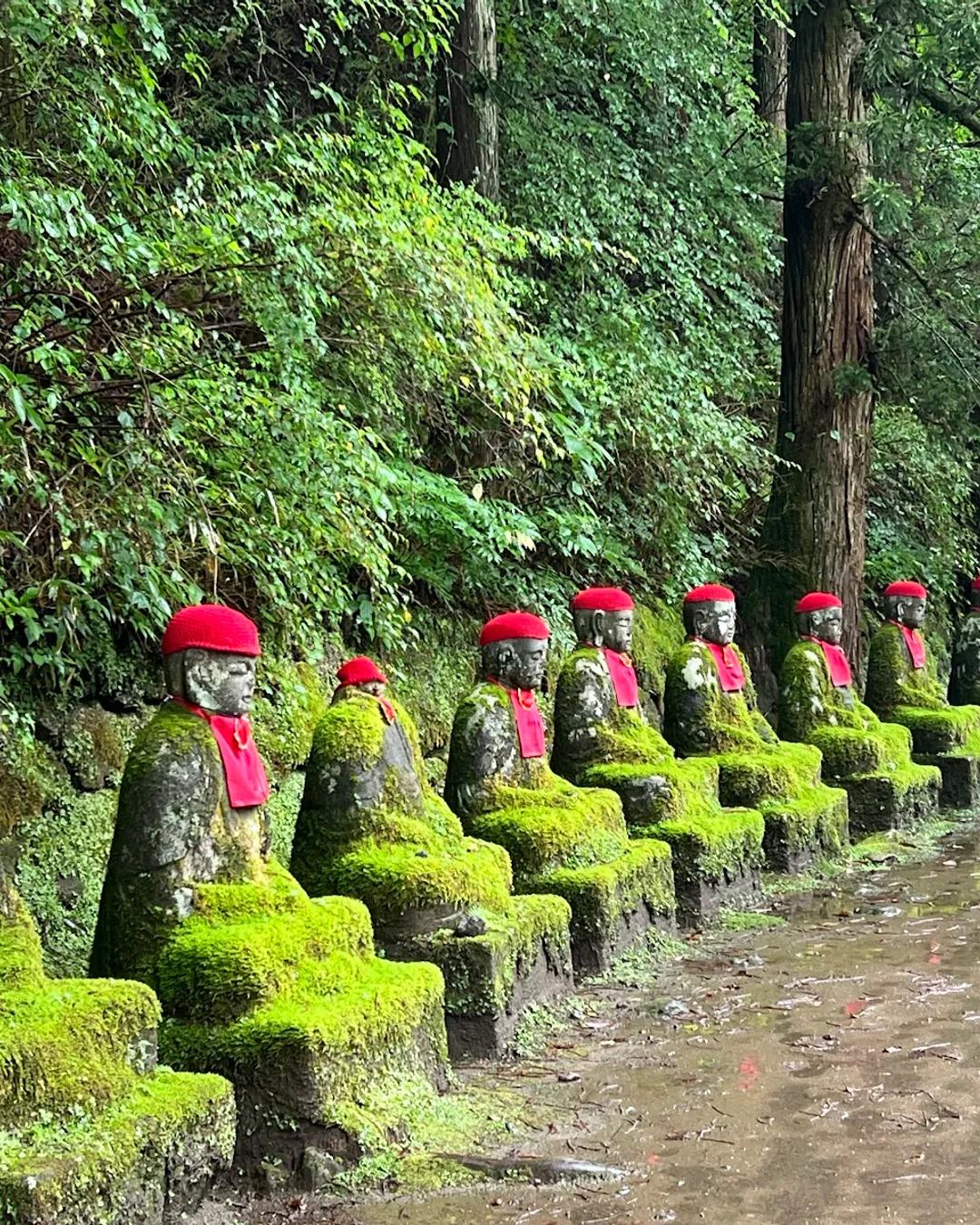 Kanmangafuchi Abyss est une courte gorge située à Nikkō, formée à la suite d’une éruption volcanique. Un sentier longe la rivière et permet d’observer environ 70 statues en pierre de Jizō, bodhisattva protecteur des âmes des défunts. Souvent appelées « Ghost Jizō » ou « Hyaku Jizō », ces statues donnent une atmosphère particulière, à la fois paisible et légèrement mystique.