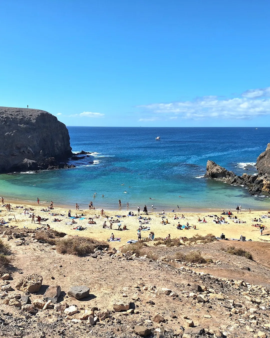 Tucked away in a protected nature reserve, Playa de Papagayo is one of those postcard-perfect coves you dream of. You'll find yourself in a stunning bay with golden sand and calm, emerald-green waters, sheltered by dramatic cliffs. It's a bit of an adventure to get here—expect a bumpy 15-minute drive on a dirt track, for which there's a small €3 entrance fee per car for the park's upkeep. From the car park, it's just a short walk and a descent down some steps to reach this little slice of paradise, perfect for a relaxing swim or snorkel.
