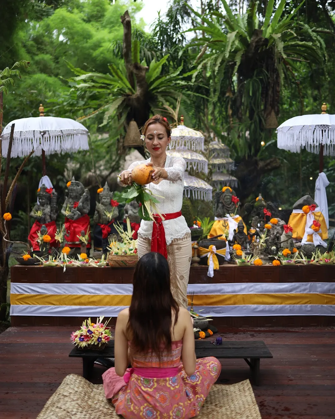 Melukat ritual, a time-honored tradition revered for its ability to cleanse not only the body but also the spirit, purifying your essence on both physical and metaphysical levels. Followed by a deeply meaningful blessing ritual, to navigate life's journey with clarity, purpose, and inner peace.