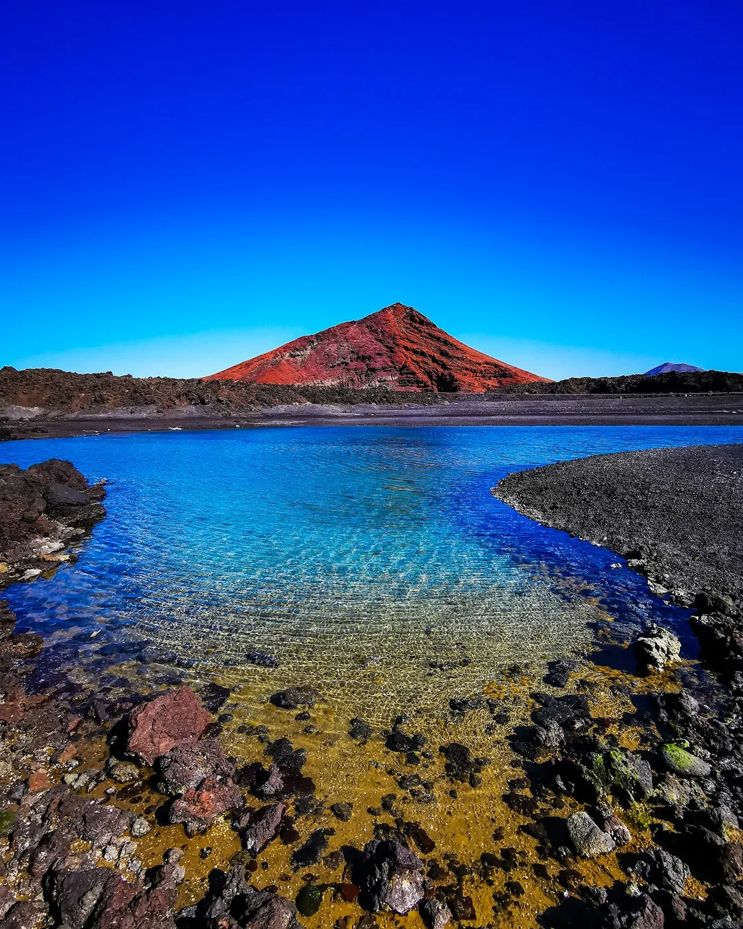 Just across the road from a small car park, you'll discover the striking black sands of Playa de Montaña Bermeja. It’s a wild and beautiful spot, with the dramatic red mountain behind you and powerful Atlantic waves crashing onto the shore. This isn't a beach for swimming, but for a memorable walk along the volcanic coastline, feeling the energy of the ocean and taking in the raw, spectacular landscapes of Lanzarote.