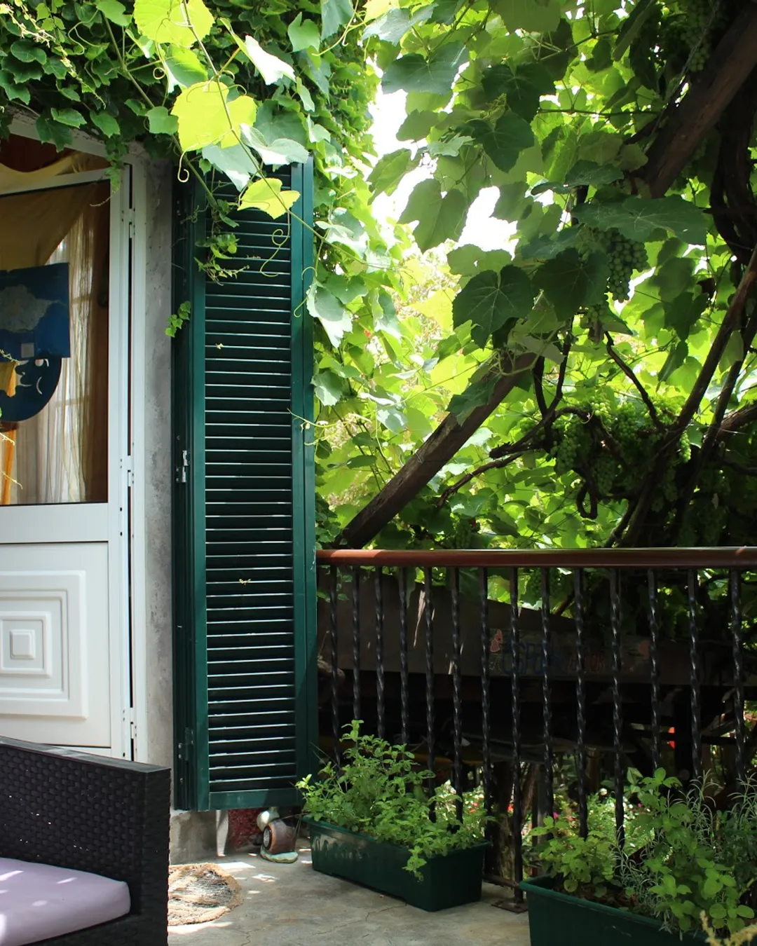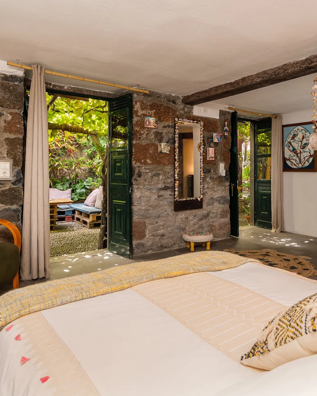 Tucked away in the heart of the village, you'll find a colourful and charming guesthouse nestled within a beautiful walled garden. It's a true local secret, perfect for those seeking peace and quiet. The rooms are cozy and open onto lush patios, creating a seamless indoor-outdoor experience. To reach this hidden gem, you'll need to park in the free car park at the village entrance and take a lovely 3-minute walk through the charming local paths.