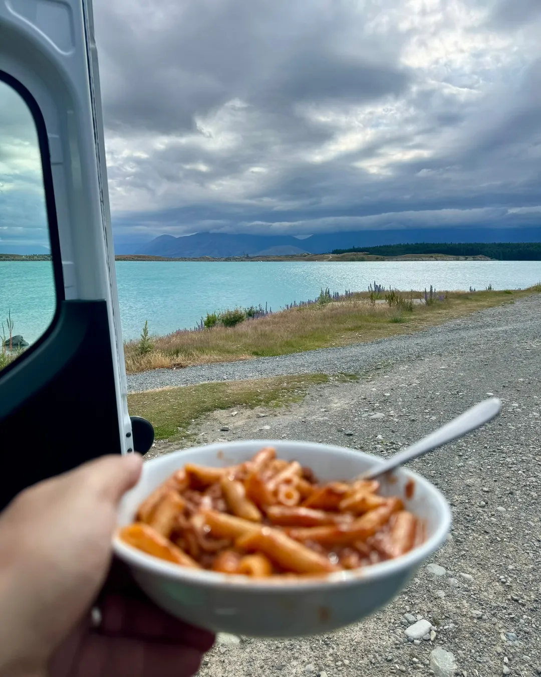 The campsite overlooks Lake Pukaki and has Mount Cook views on a clear day. Highly recommended campsite, but definitely get there earlier to secure a spot. There is a toilet, and it’s a freedom campsite.