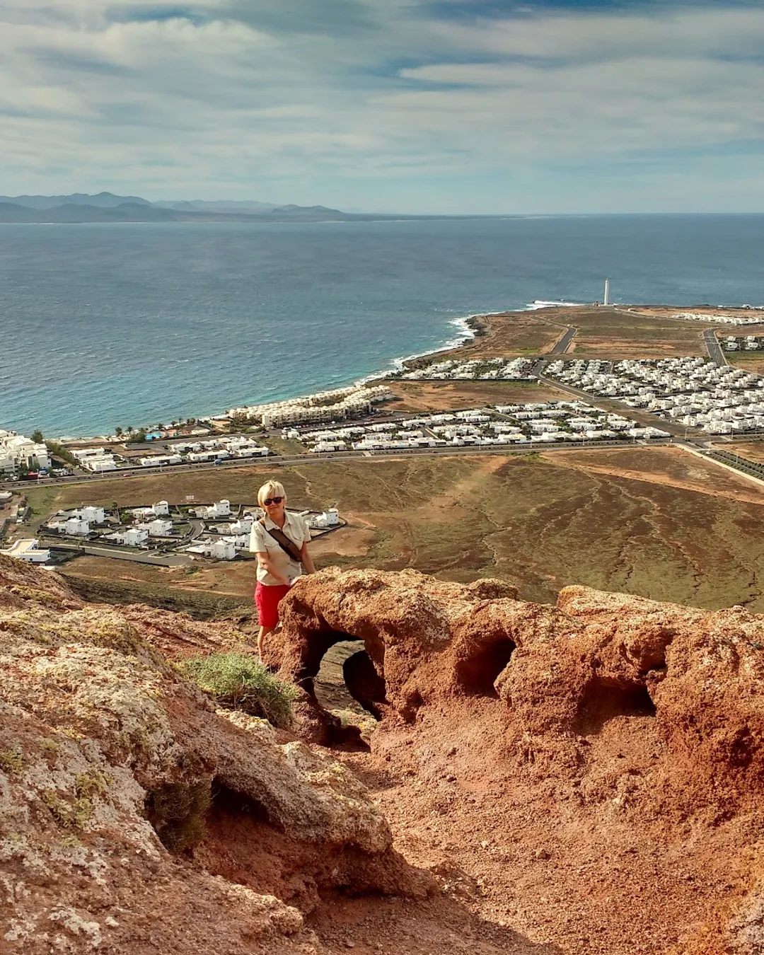 Get ready for an unforgettable walk up Montaña Roja, our very own 'Red Mountain' right here in Playa Blanca. It's a relatively short and manageable hike, about 45 minutes to an hour, leading you to the rim of a stunning volcanic crater. From the top, you'll get the most incredible panoramic views over the town, across the sea to Fuerteventura and Lobos island – it's truly breathtaking, especially at sunrise or sunset. The path starts from a residential area, and once you're up there, you can even walk around the entire crater rim for a full 360-degree perspective.
