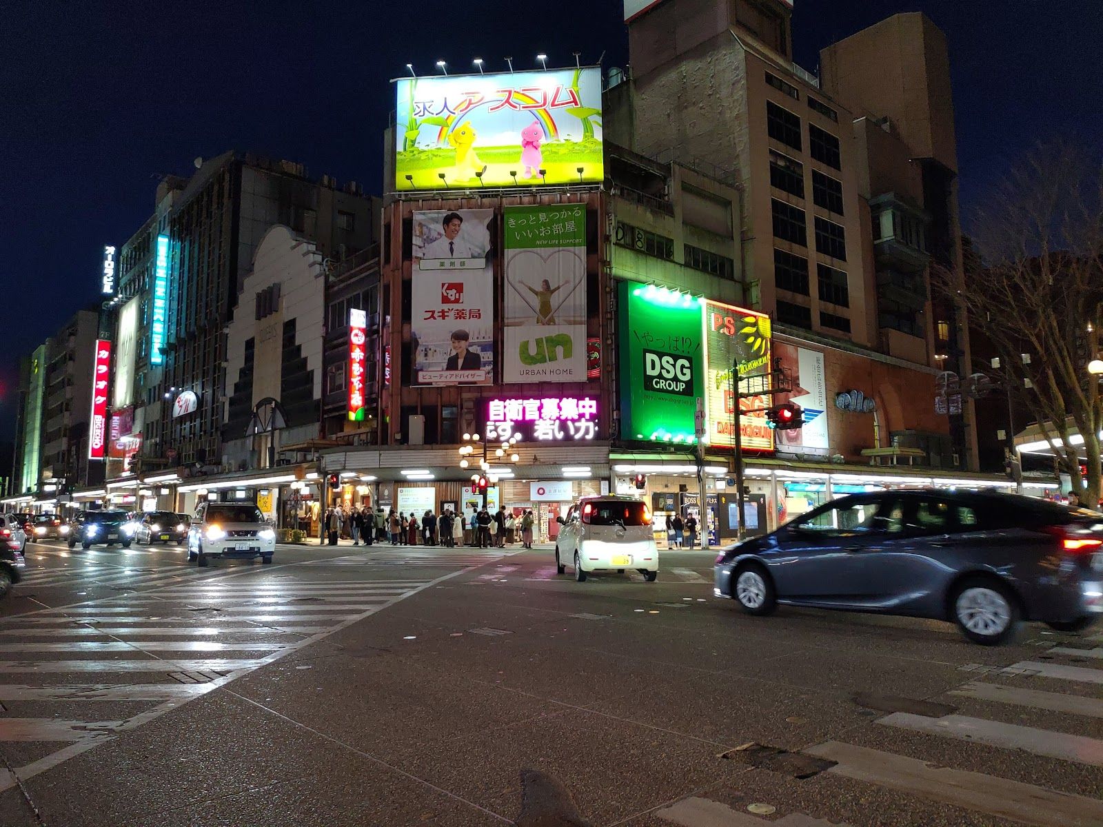 Katamachi is one of Kanazawa’s main entertainment districts, located near Korinbo and within walking distance of Kenrokuen and the Nagamachi samurai area. The district is known for its concentration of restaurants, izakaya, bars, and small nightlife spots. Many narrow streets branch off the main avenue and are filled with local eateries, late-night ramen shops, and casual bars. It is one of the busiest areas in Kanazawa in the evening.